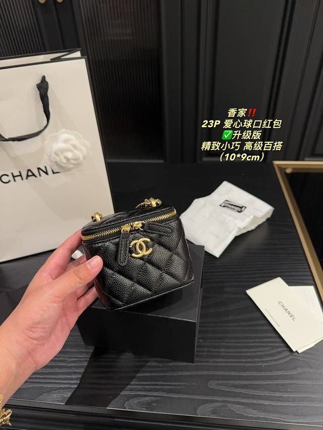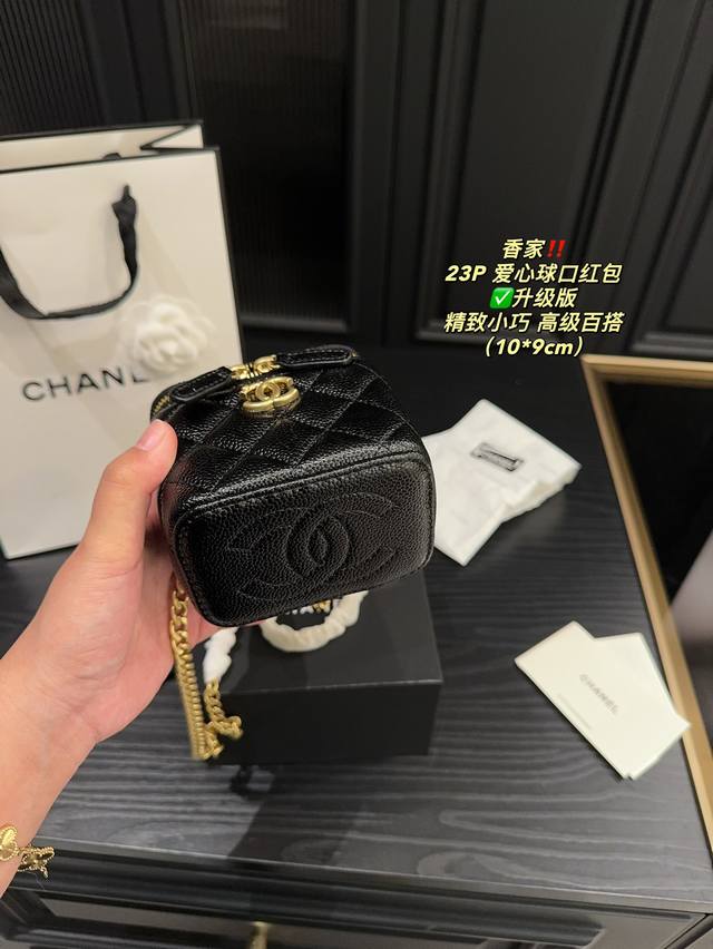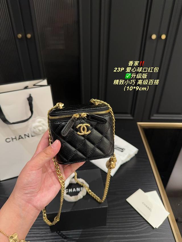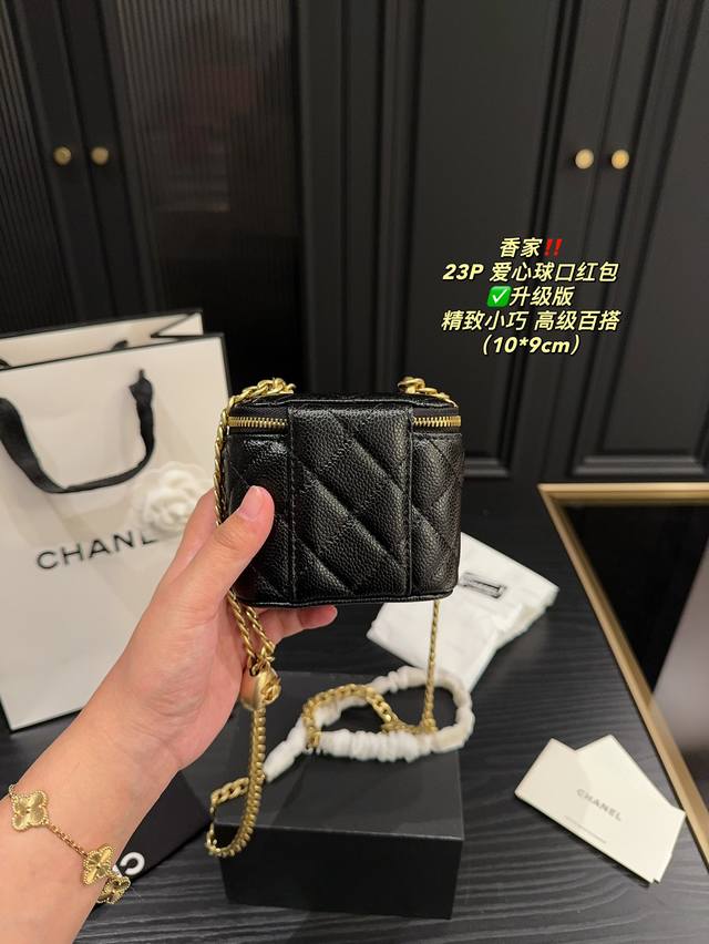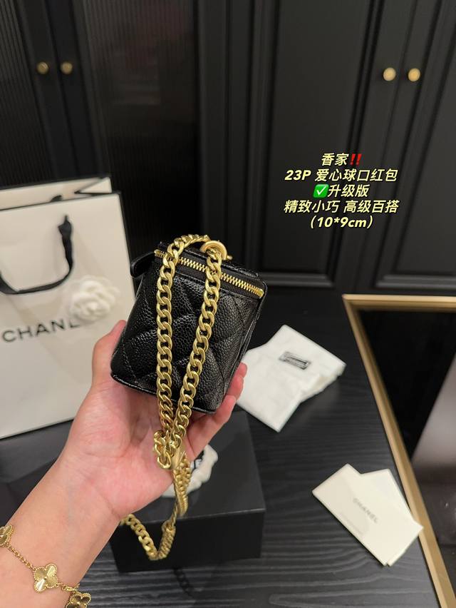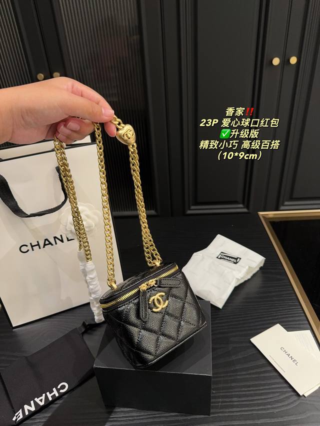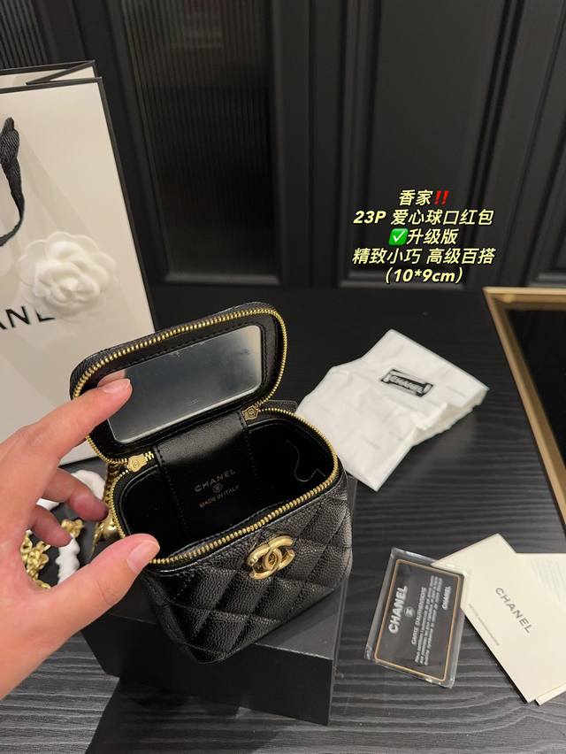 香奈儿23P爱心调节扣方盒子,实物真的超美!黑色荔枝皮耐用好搭,轻松搞定精致小香风园爱心金球能随意调节高度,美观又实用虽然是小废包,但也很能装哦