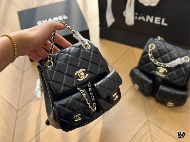 / 折叠盒 Chanel23P Duma中号双肩包 口袋设计加上三个chanel双clogo整包很立体有型 尺寸17.5*17