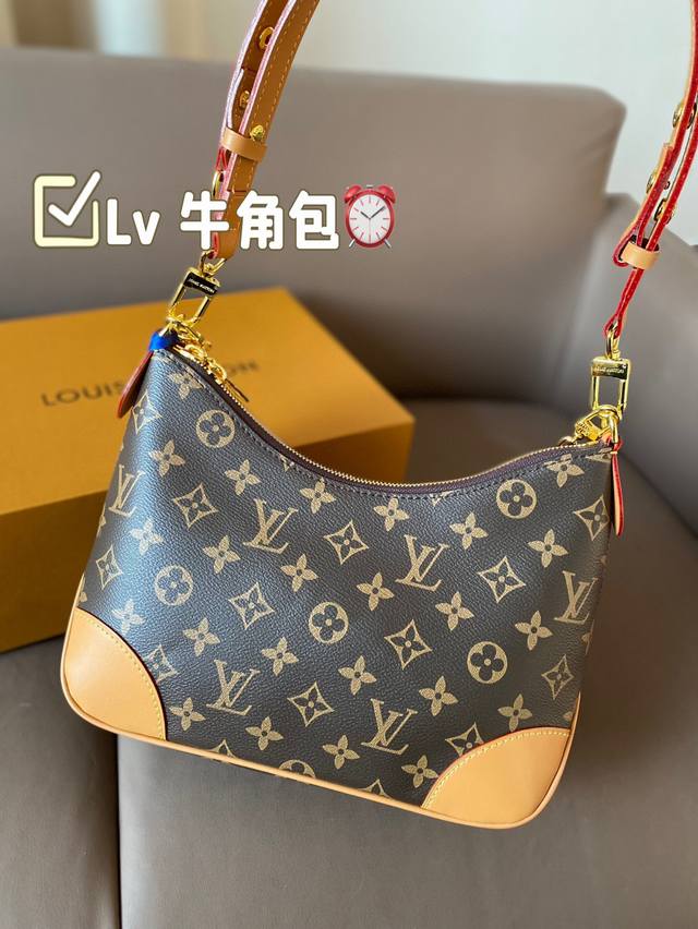 配礼盒. Lv 2024新款boulogne牛角包 拉链 老花 皮肩带 轻便 大容量▼ 斜挎 单肩 腋下 手提 一包四背,链条点8和肩带都可拆卸...