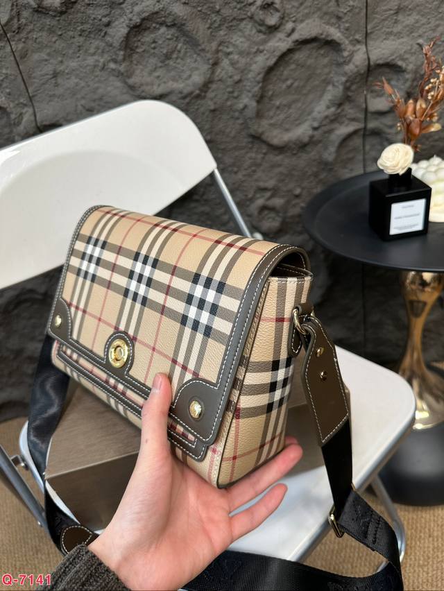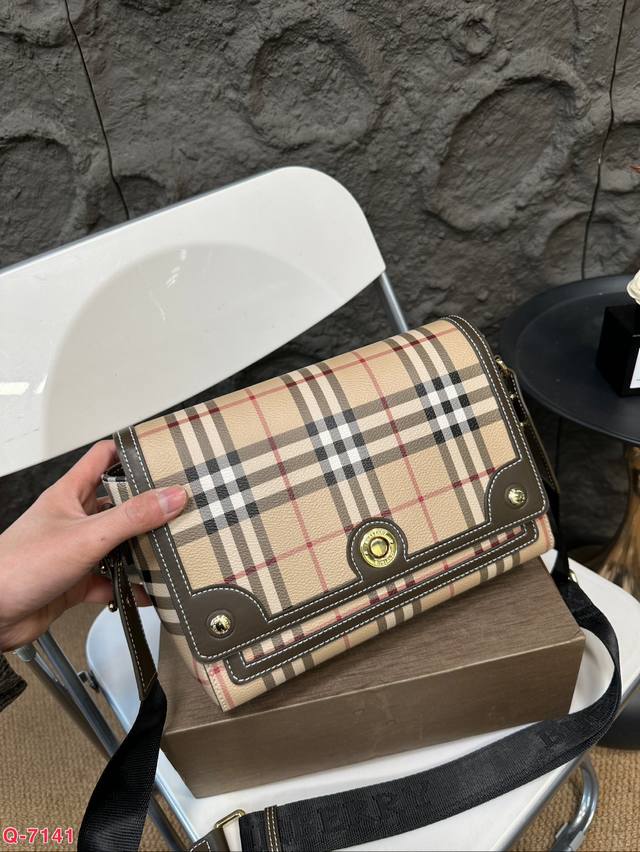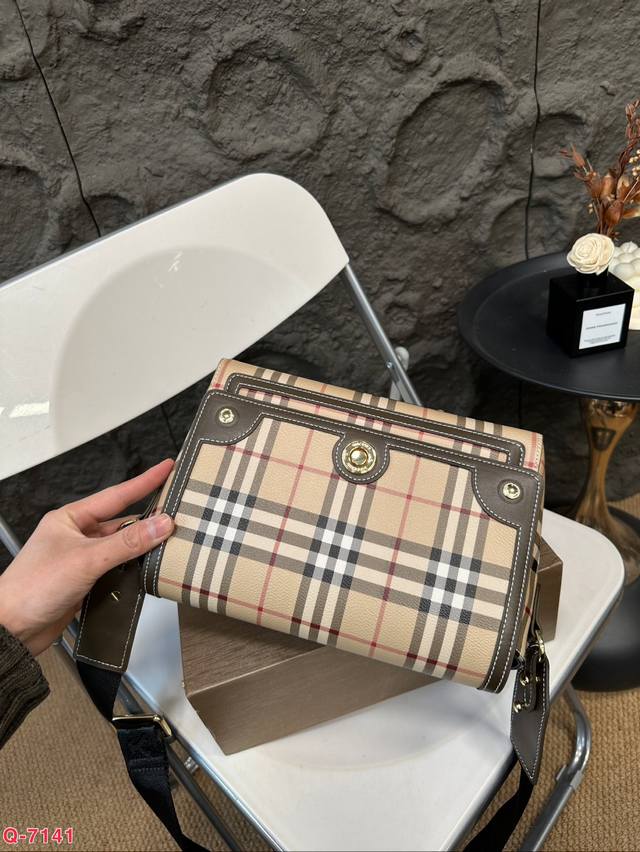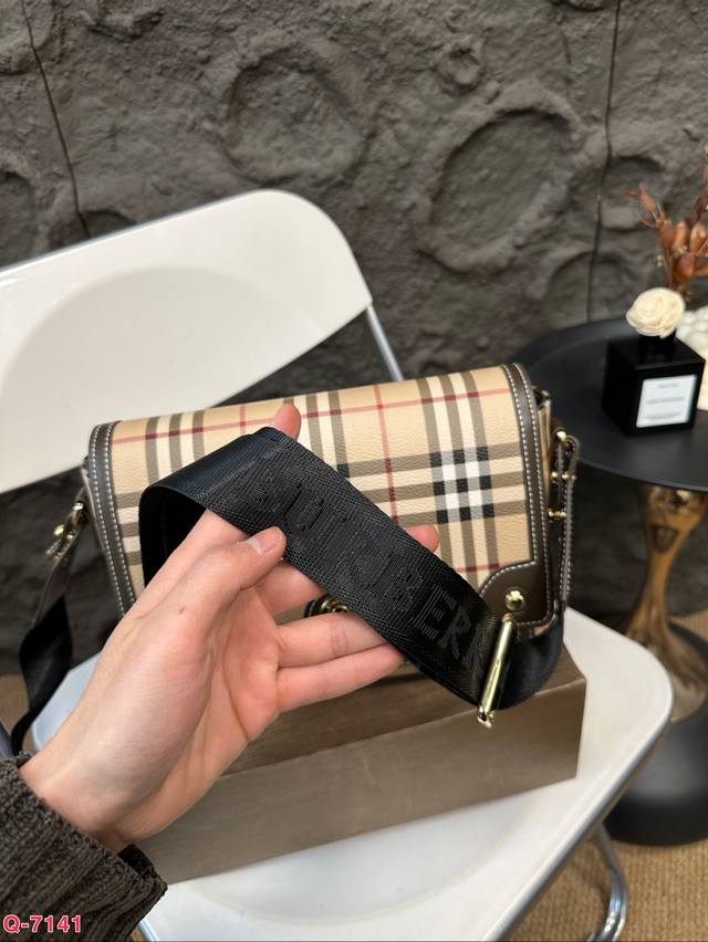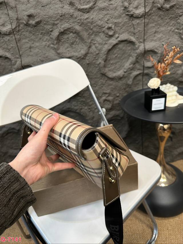 巴宝莉专柜最新款单肩斜挎包,实用耐久的面料 采特殊亚麻材质搭配牛皮四季必备 单肩斜挎背两用款 尺寸 25.18Cm