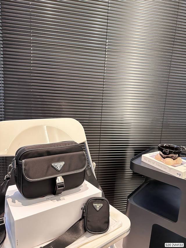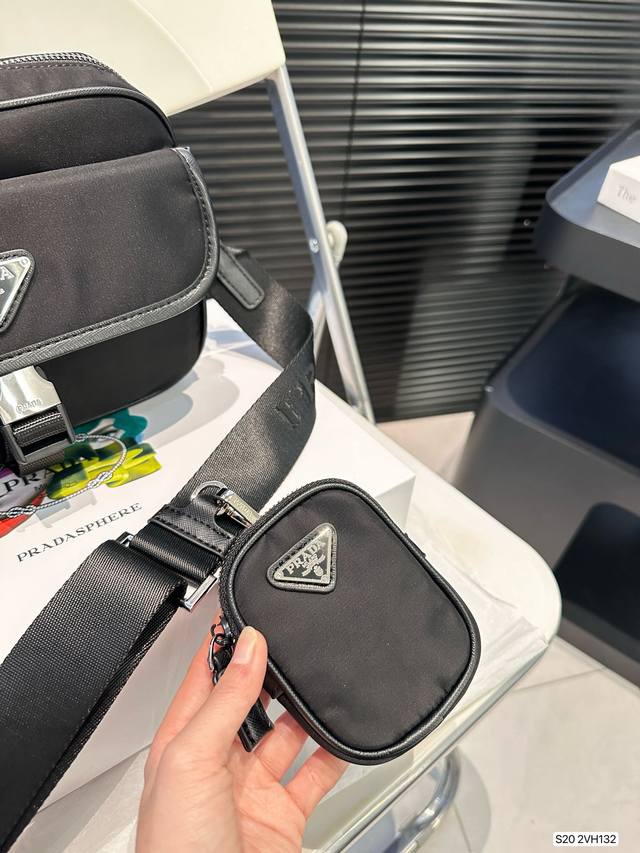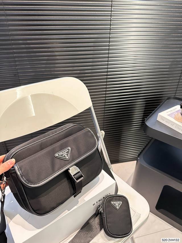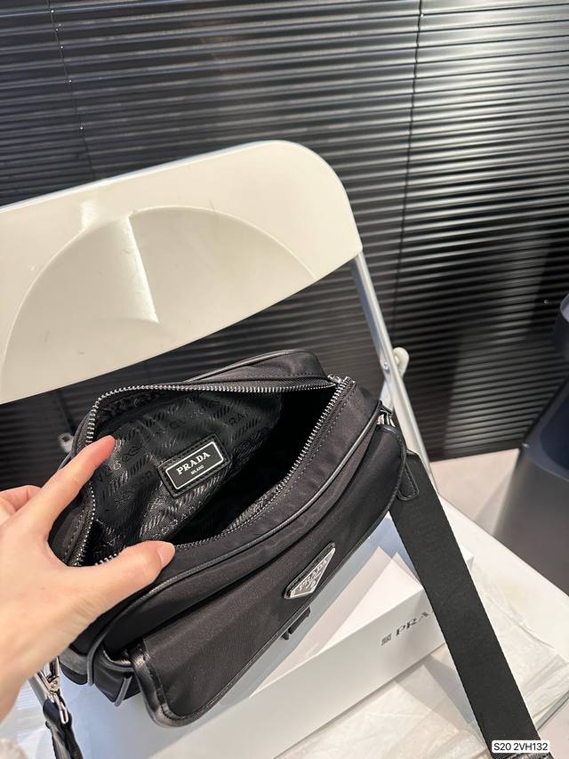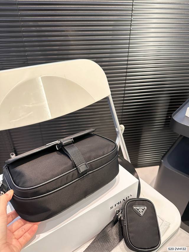 / 配折叠盒子 普拉达prada 尼龙邮差包 百搭到没朋友 就是酷 时尚感超强 辦识度很高 很能装,上身也帅气 尺寸:23.5 16.5 货号2Vh132