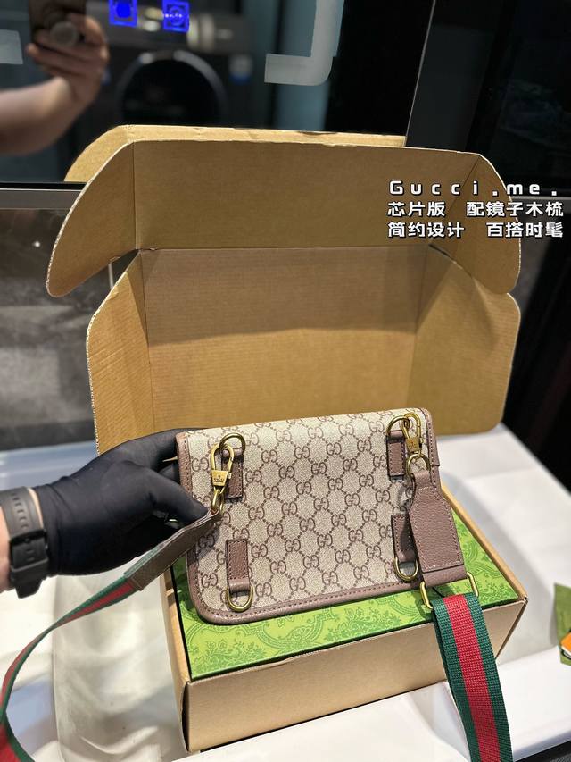 礼盒包装 酷奇 胸包 Gucci 挂钩版配木梳小镜子 男生女生日常休闲搭配的理想选择~ 实用又百搭,小小的身体大大的空间 非常适合放随身物品~尺寸24×16
