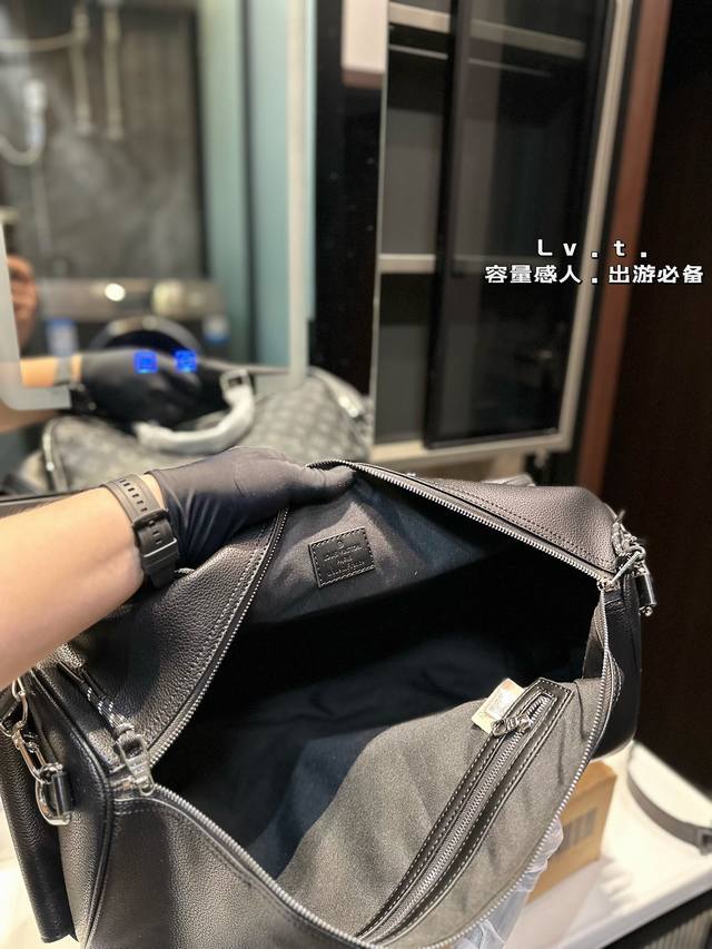 Lv旅行袋一只帅气能装的旅行袋 时尚爆发款火热来袭 包包采用原版皮质 超级厚实 耐磨 容量超大装衣服 鞋子超能装 无论是手提还是斜肩背上 都超好看. 尺寸:50