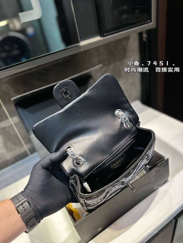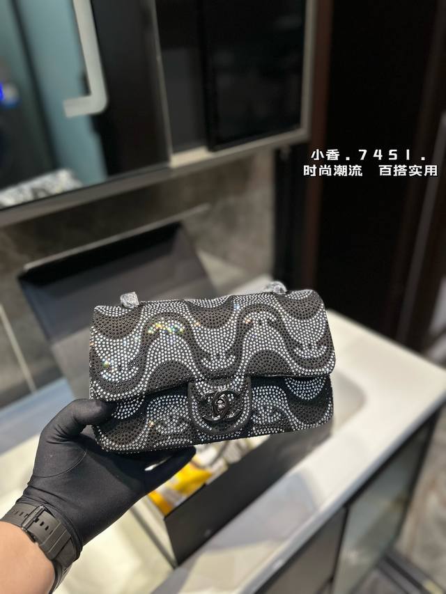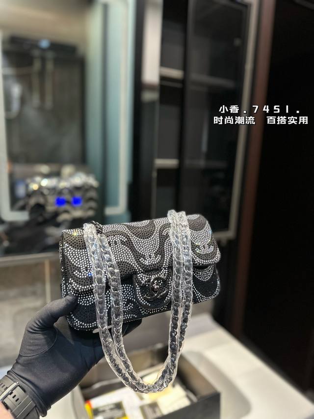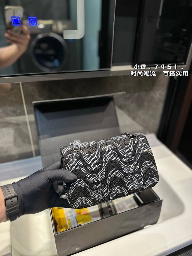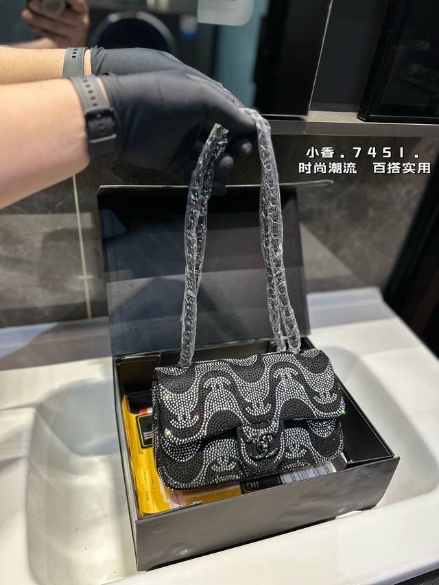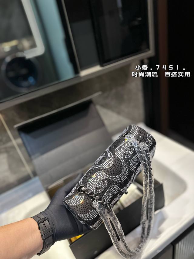礼盒包装 新款cf 满钻链条 Chanel 香奈儿 链条包 可斜挎单肩,上身后超显气质小巧实用 超级百搭必备单品 配礼盒 尺寸23Cm
