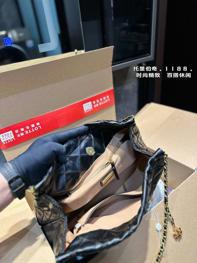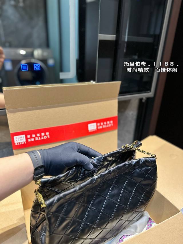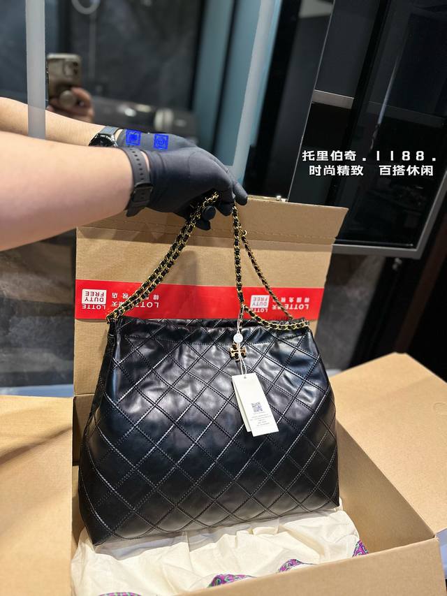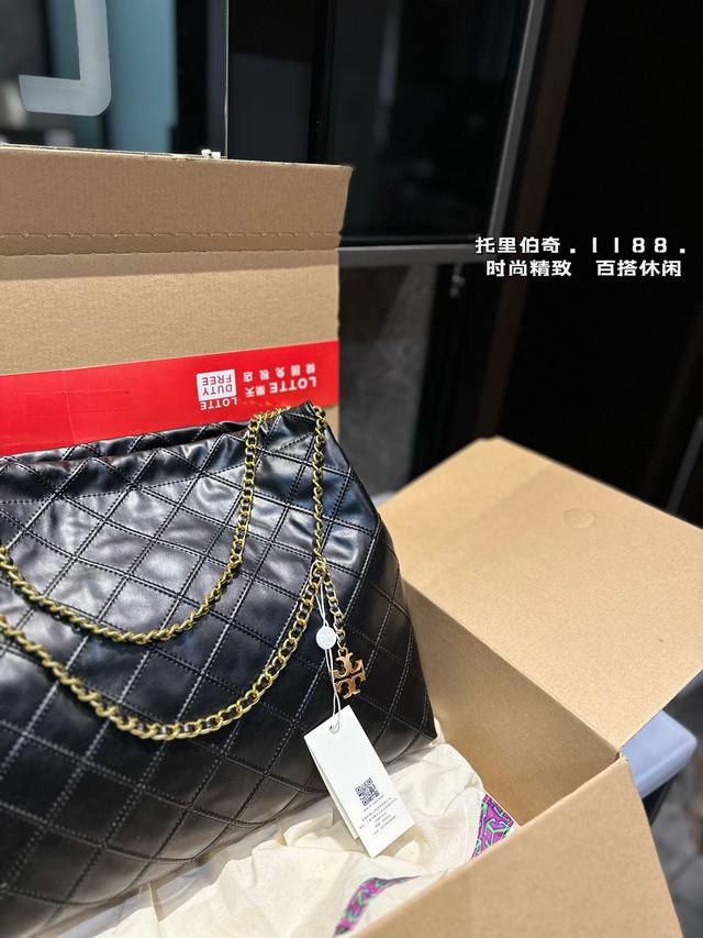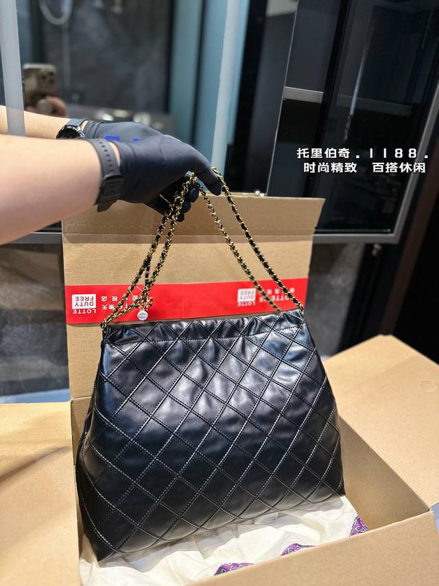 托里伯奇tb 菱格链条托特包 新款垃圾袋 质感很高级 容量超级大也很耐用 日常出街背它回头率百分百 就是这种随性慵懒感尺寸36.29