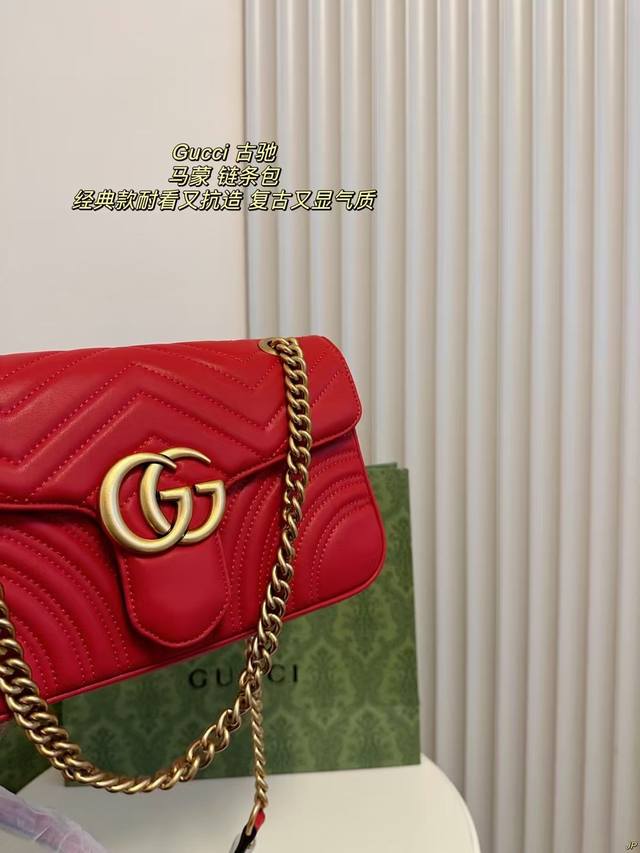 配盒 Gucci 古驰 马蒙链条包 古驰家的经典款真的值得入手,耐看又抗造容量超大,上身轻 ,无论是搭配小白裙或者是工作服复古又显气质 尺寸:26*17