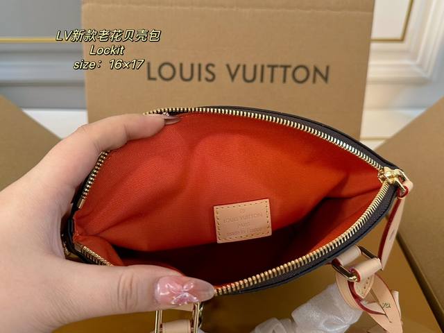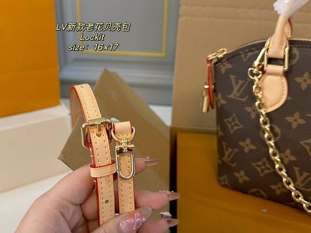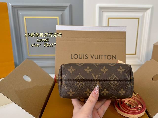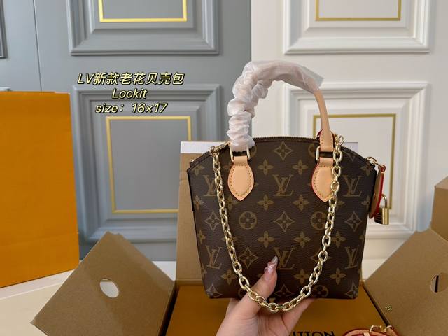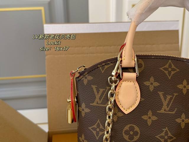 折叠盒飞机盒 Size:16×17 Lv路易威登新款lockit Bb贝壳包 8月新款的老花真的又要火了 迷你小巧的容量 可调节肩带 带金属链条,带金属小挂件
