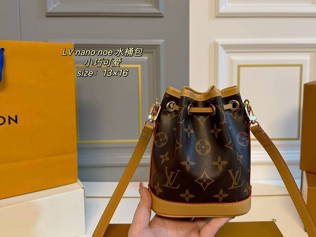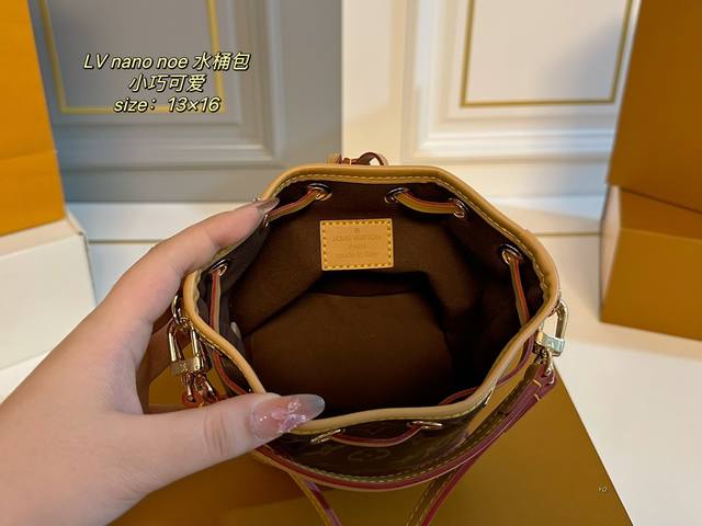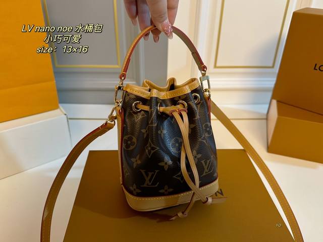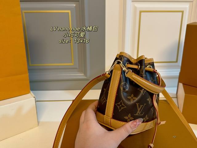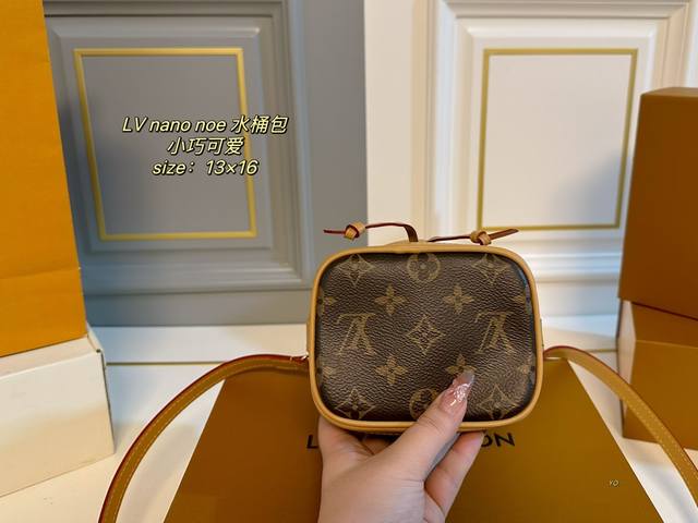 折叠盒飞机盒 Size:13×16 Lv路易威登nano Noe水桶包 包身立体有质感,抽绳自由收缩! 复古和实用性更强 肩带拆卸也可手拿手挽~ 百搭耐看,可以