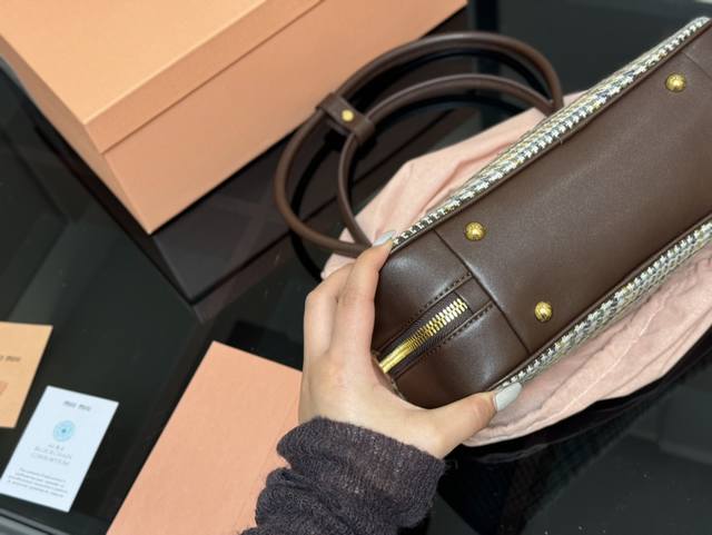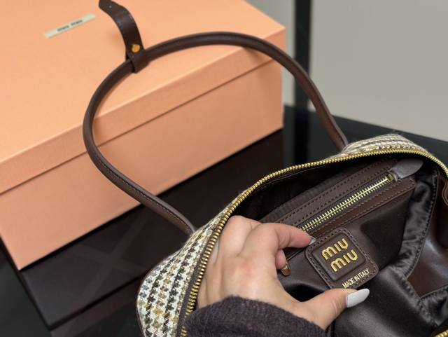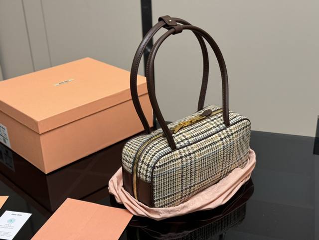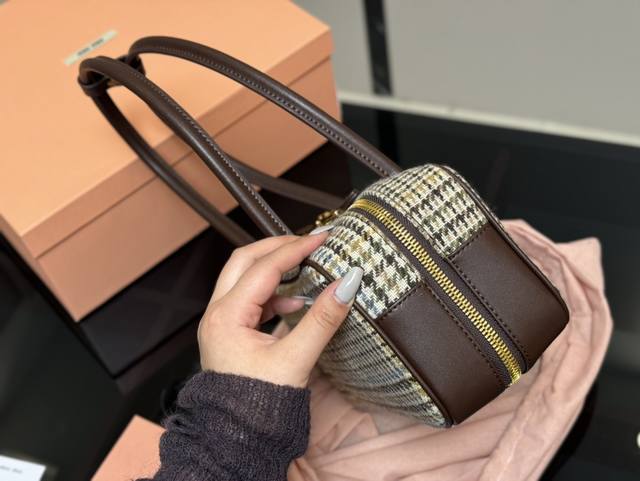 / 升级版配盒 Size:28*13Cm Miumiu保龄球 公文包 包包甜度刚好! 很难不爱啊啊! 可手拎也可斜挎 绝对不是小废包哦容量足足的~~ 出场就是miu