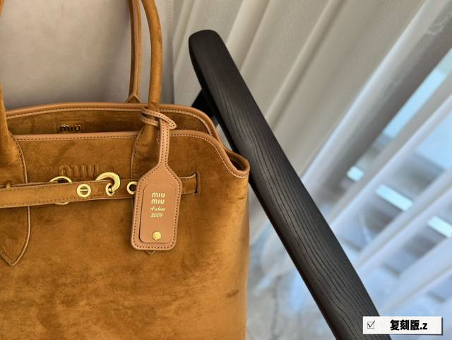 Miumiu新包 24秋冬看秀的时候就觉得一定要拿下的新款 实物到手,超级喜欢 做旧褪色感的皮革颜色与质地,配上金属皮带搭扣 日常通勤也够了 酒放得下一瓶miu