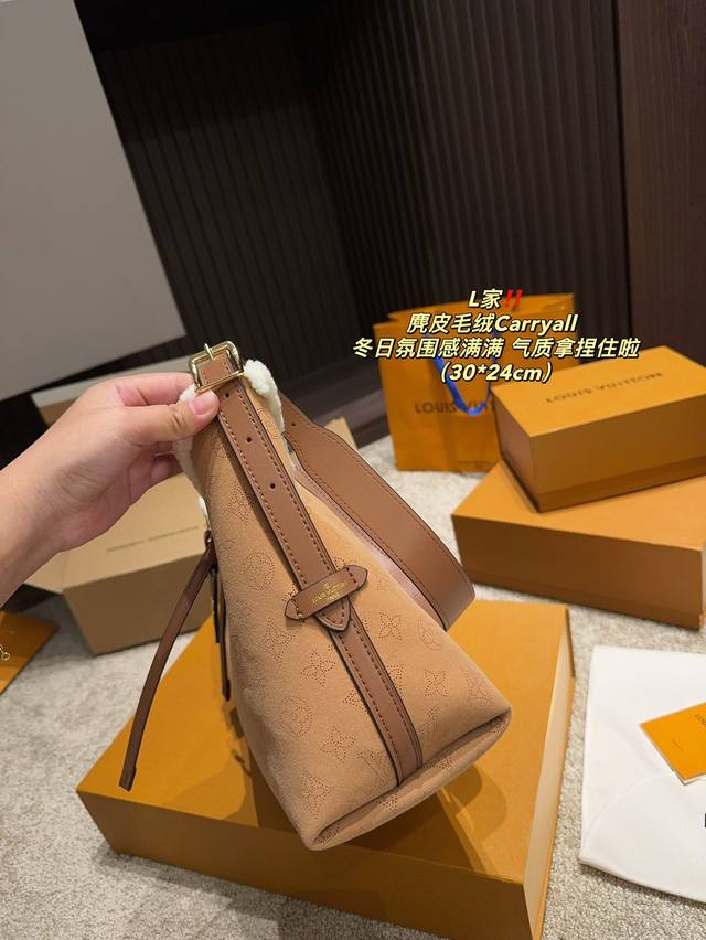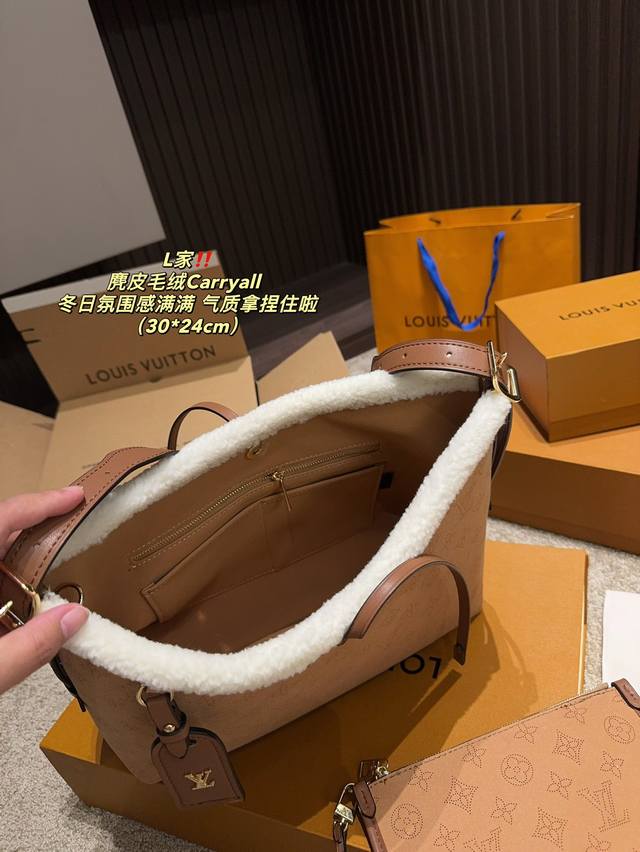 / 全套包装尺寸30.24 Lv 麂皮毛绒carryall Carryall也是过上冬了 Lv真是太能整活了 每年的毛绒绒都让人心动不已 但是麂皮羊绒背上真的太有冬