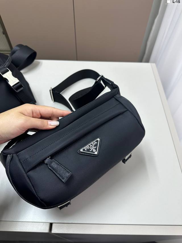 普拉达re Nylon尼龙布腰包胸包 多功能防水布单肩斜挎包 采用精湛镶嵌细工,经典百搭 实物拍摄 原厂原版面料 L-15尺寸28×15 23×16配盒
