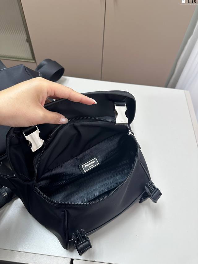 / 小 Prada 普拉达 普拉达re Nylon尼龙布腰包胸包 多功能防水布单肩斜挎包 采用精湛镶嵌细工,经典百搭 实物拍摄 原厂原版面料 L-15尺寸28×15