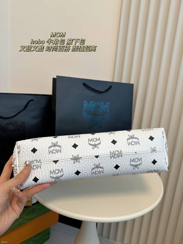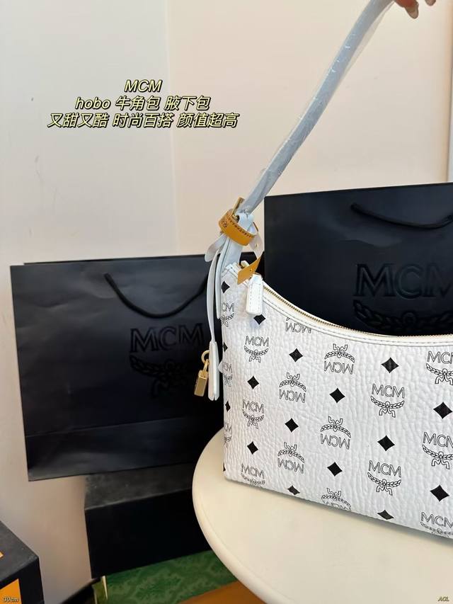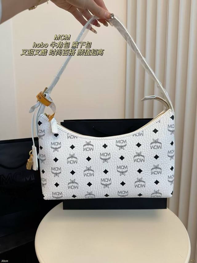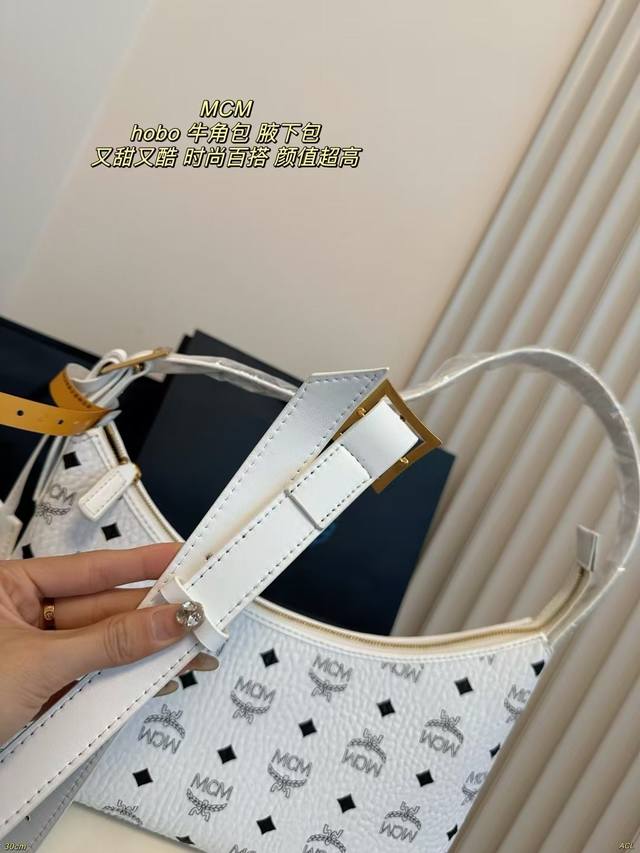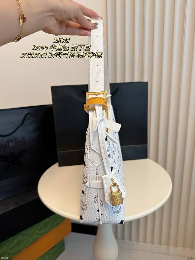 / 配盒 Mcm 牛角包 配延长带单肩斜挎腋下皆可 又甜又酷一整个爱住 百搭时尚颜值超高 是每个潮酷女孩必入单品。 尺寸:30*16Cm