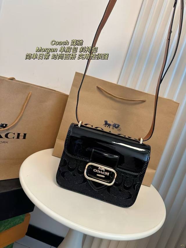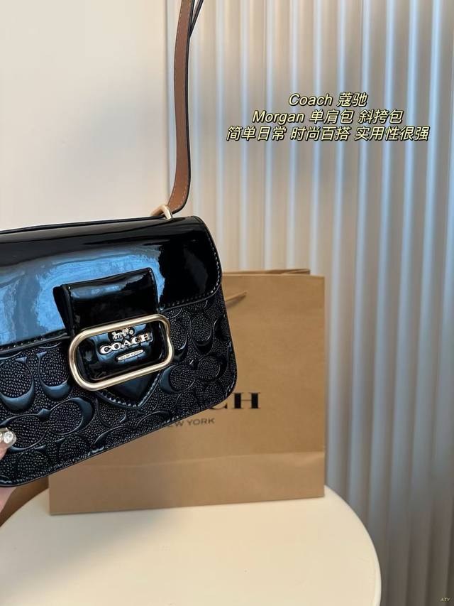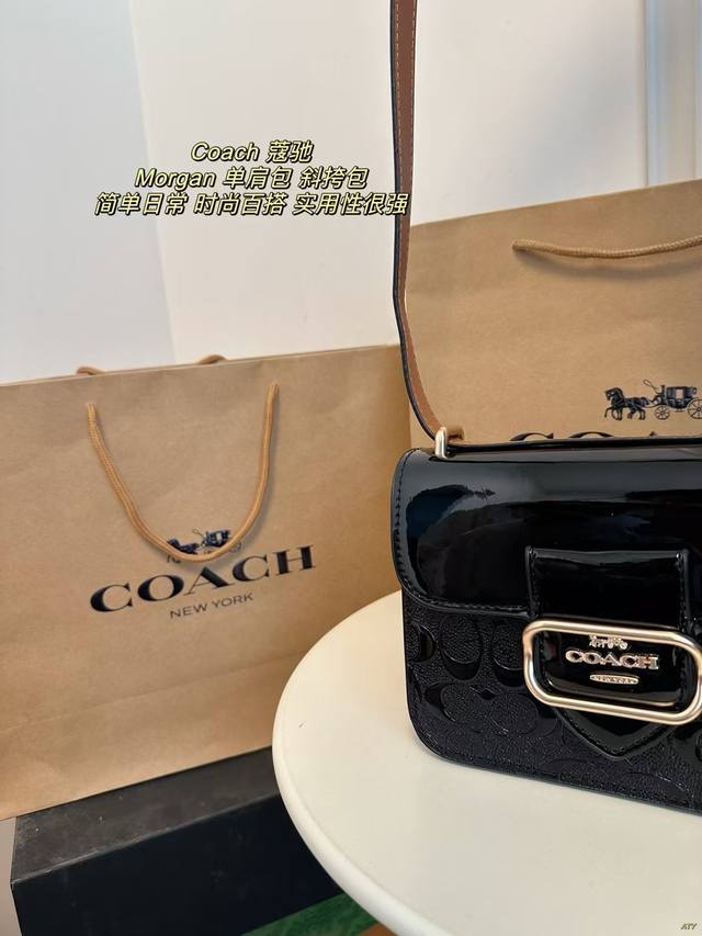 配盒 Coach 蔻驰 Morgan单肩包斜挎包腋下包 漆皮搭配金色翻扣马车大气上档次,可斜挎可单肩,实用性很强。 尺寸:18.5*14.5Cm