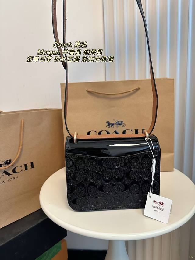 / 配盒 Coach 蔻驰 Morgan单肩包斜挎包腋下包 漆皮搭配金色翻扣马车大气上档次,可斜挎可单肩,实用性很强。 尺寸:18.5*14.5Cm