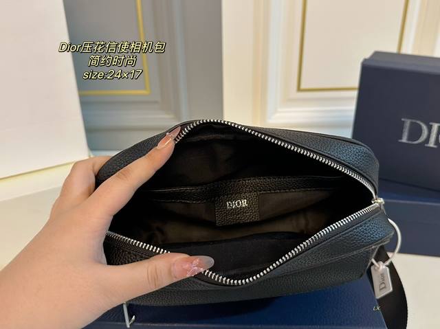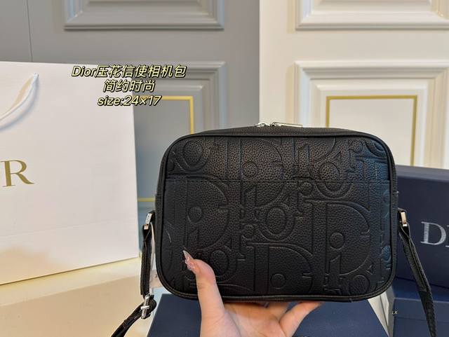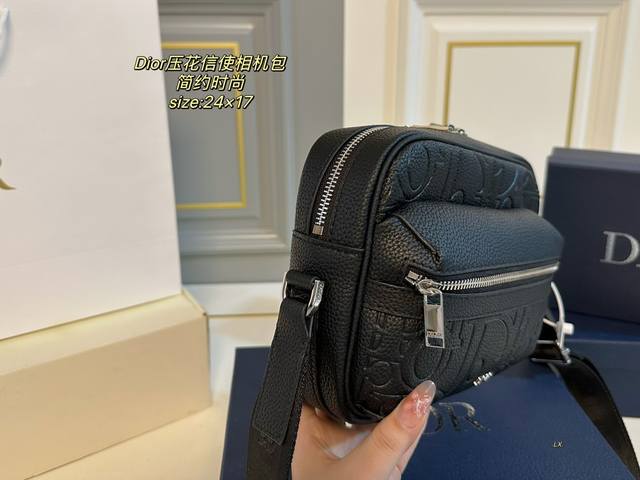 / 配盒 Size:24×17 Dior迪奥新款rider压花信使包相机包 外观简约而时尚,内部空间利落宽敞 造型设计赋予学院风高贵充满活力 质感超好,压花工艺 辨