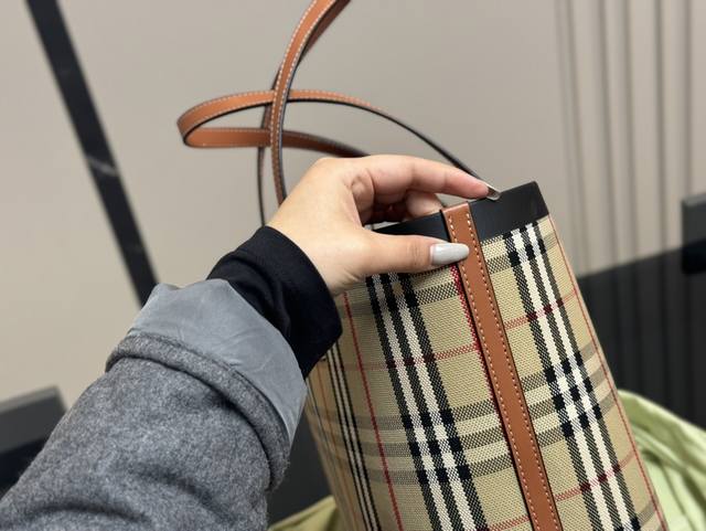 配盒尺寸12.17 巴宝莉 菜篮子 通体的经典格纹 也不难发现它是 Burberry 很简约低调的一款手提包 出门逛街通勤带上它可爱又迷人
