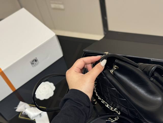 / 配折叠盒 香奈儿chanel 青蛙 流浪双肩包经典一直很喜欢 自重很轻又很能装, 任何场合都能背,适配任何风格。 很经典的一款包,背个几年都不过时 尺寸: 20