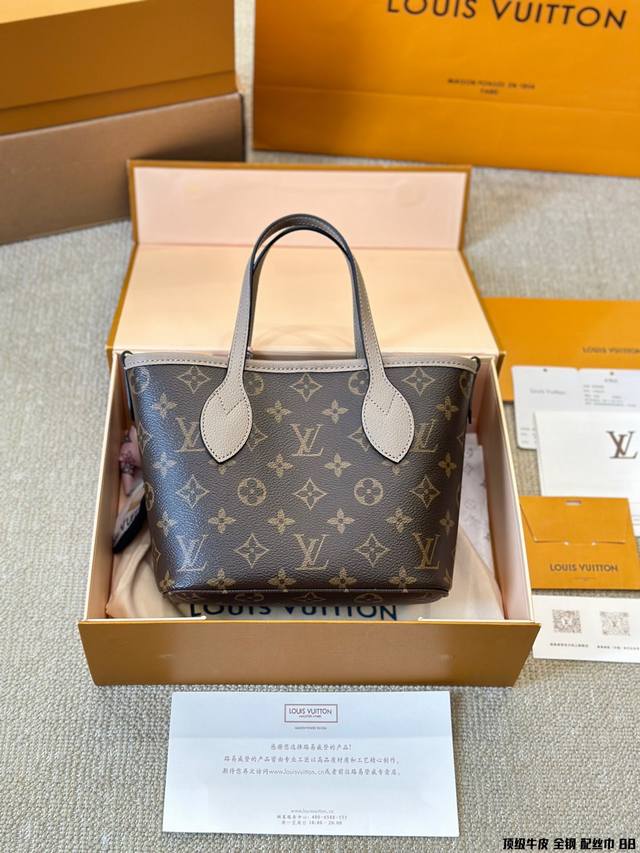 顶级牛皮 全钢五金 配丝巾 Lv新款超迷你neverfull Bb又奶又高级 超mini尺寸轻盈便携~却不失优雅气质