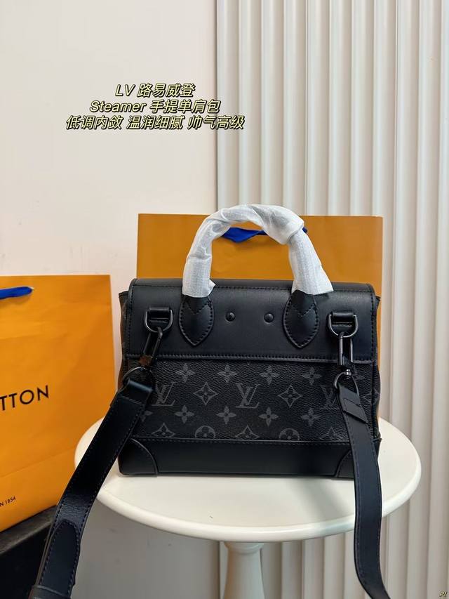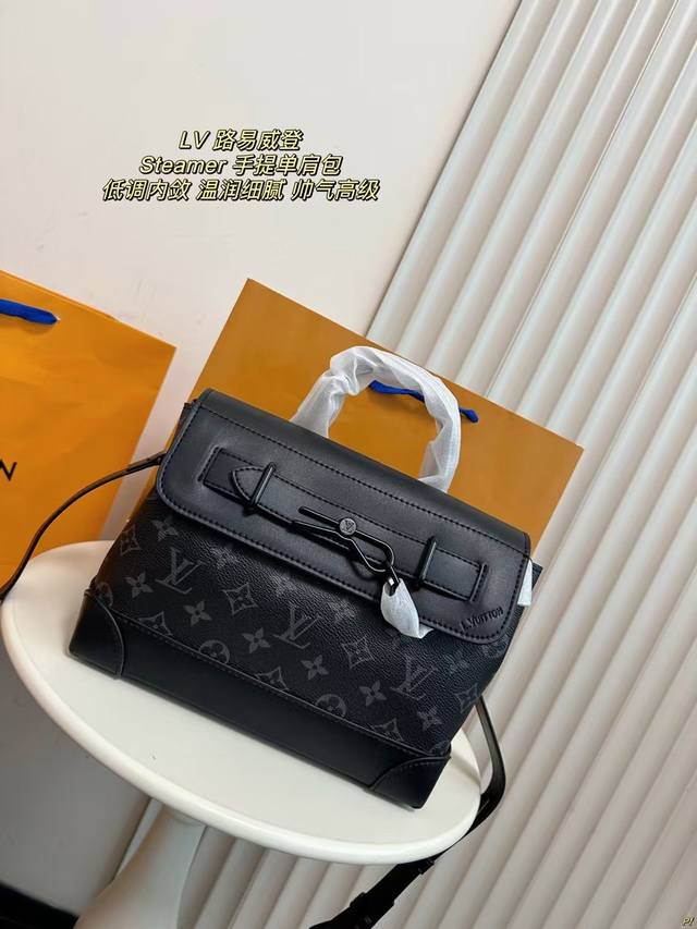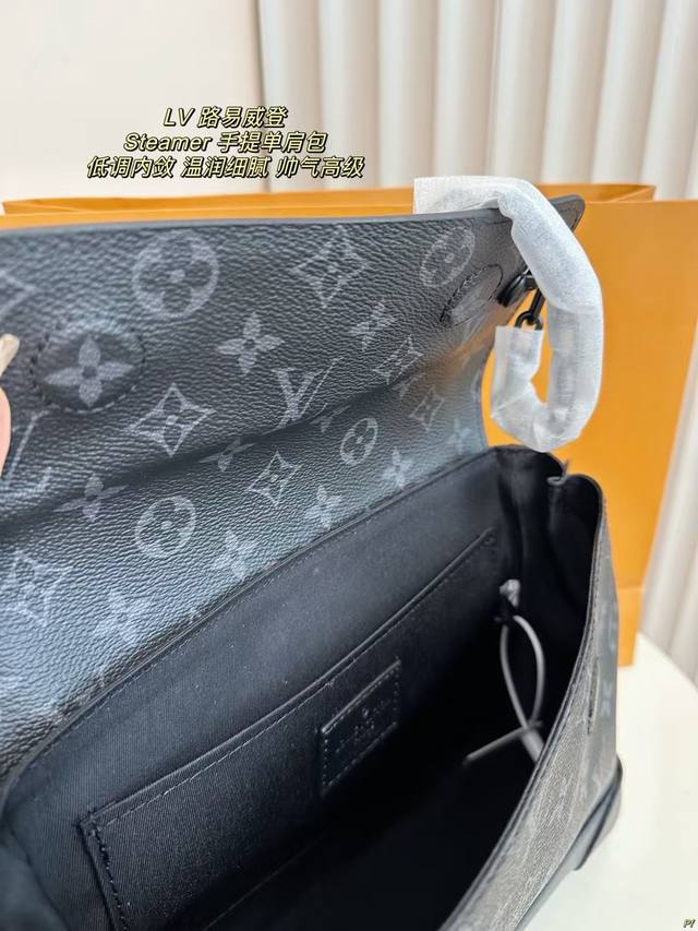 配盒 Lv 路易威登 Steamer男士手提单肩包 低调内敛黑武士 温润细腻帅气高级 非常百搭耐看 经典时髦。 尺寸:25*20Cm