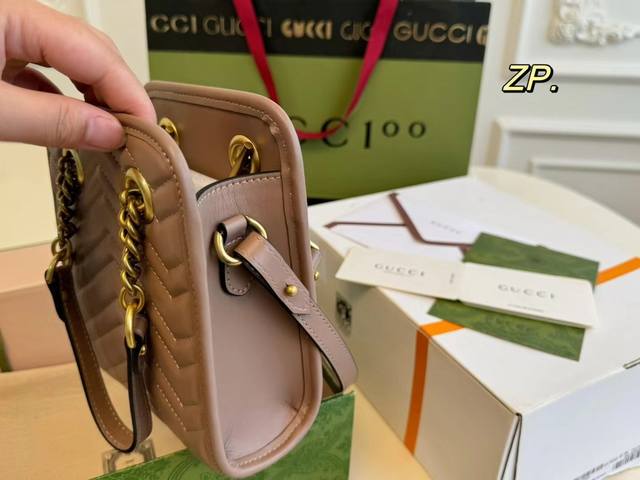 配皮 飞机盒 配便携小镜子梳子 酷奇Gucci酒神包 带来了不一样视觉效果 复古氛围感拉满 永不过时的经典 尺寸 25 13
