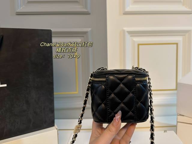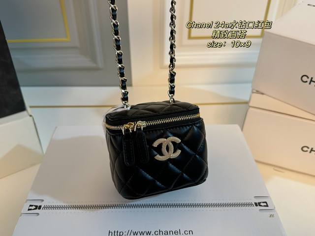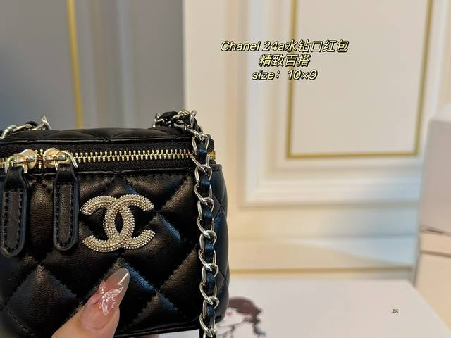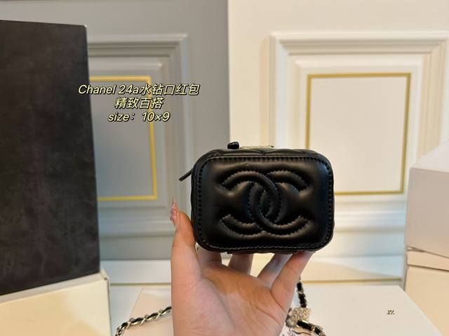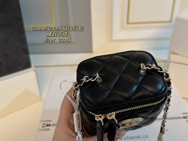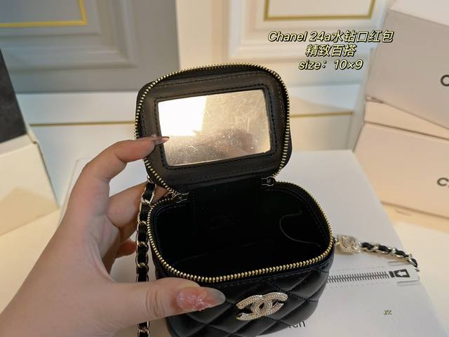 折叠盒 Size:10×9 Chanel 香奈儿24A水钻口红包 链条上水钻饰品点缀 增添一抹时尚感,颜值在线! 包身轻便,精巧别致~ 时髦又好看,凹造型神器