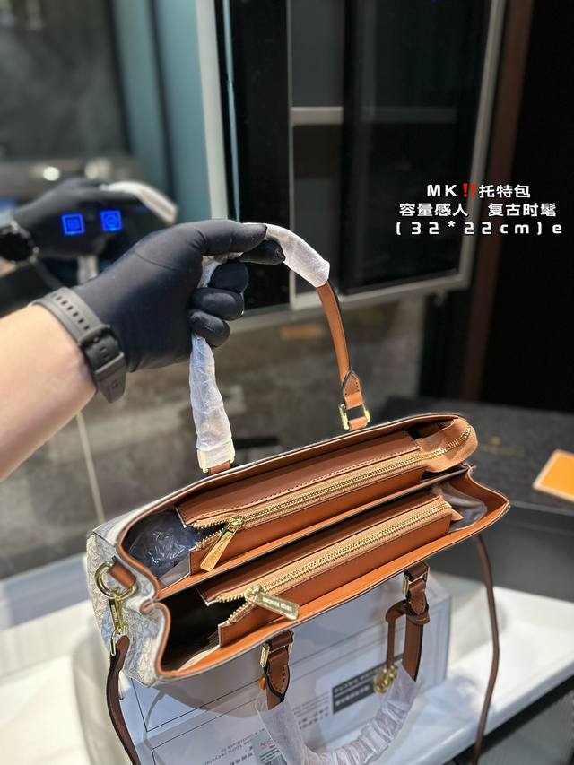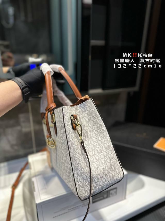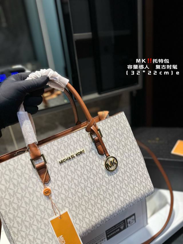 / 礼盒包装 Mk 托特包贵气光感五金潋滟波光粼粼~ 肩带长度可调 便捷实用 内部空间跟开敞 空间容量在线 日常背也尊嘟很百搭尺寸32.22