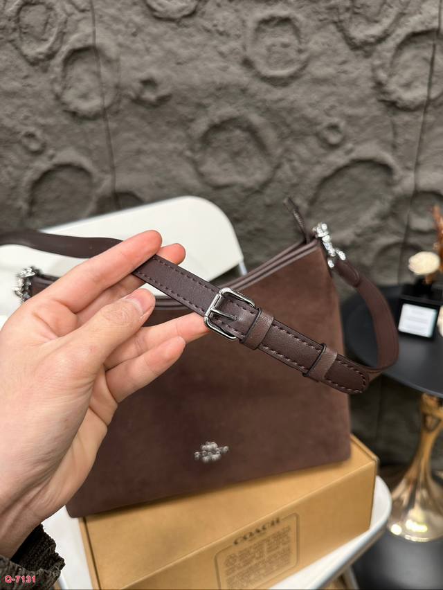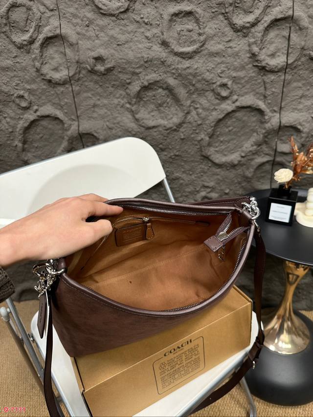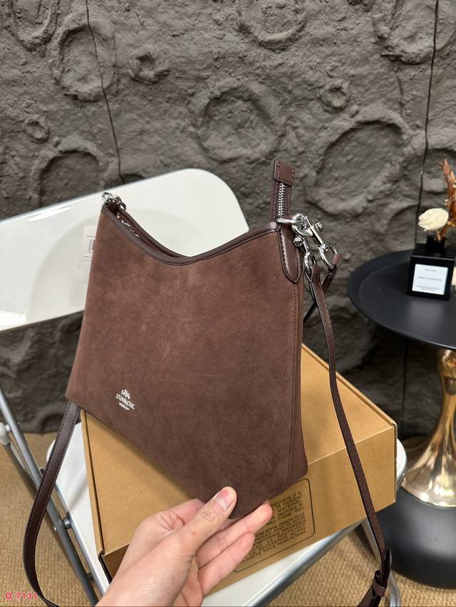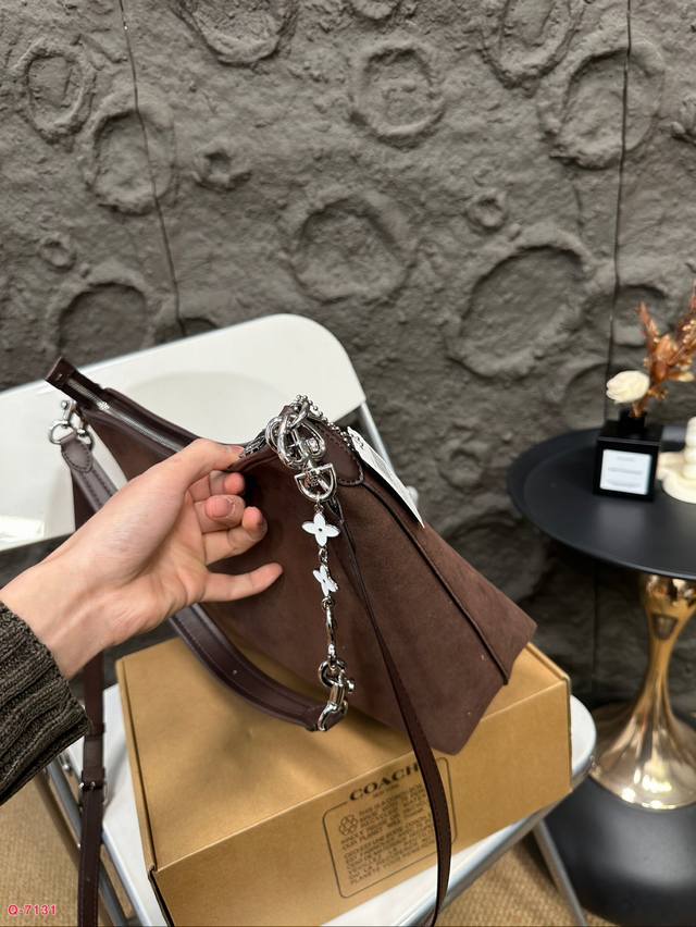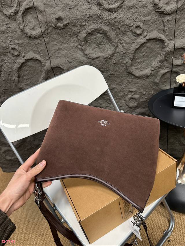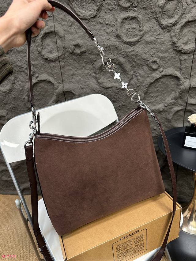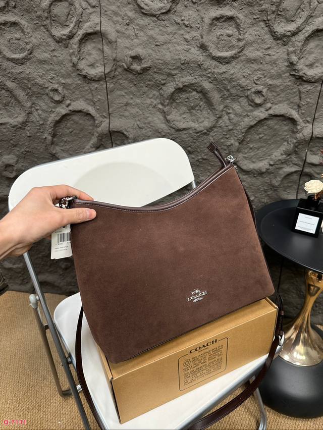配礼盒 蔻驰coach Laurel鹿皮绒大号腋下包单肩包斜挎包复古,顶部带拉链,安全又方便,海报款 爆火!双肩带句手提,可腋下容量非常可以。尺寸30.21Cm