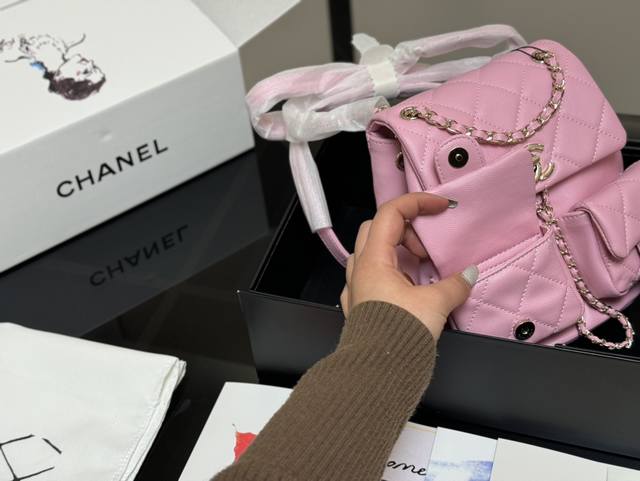 / 配折叠盒飞机盒 香奈儿chanel 青蛙 流浪双肩包经典一直很喜欢 自重很轻又很能装, 任何场合都能背,适配任何风格。 很经典的一款包,背个几年都不过时 尺寸: