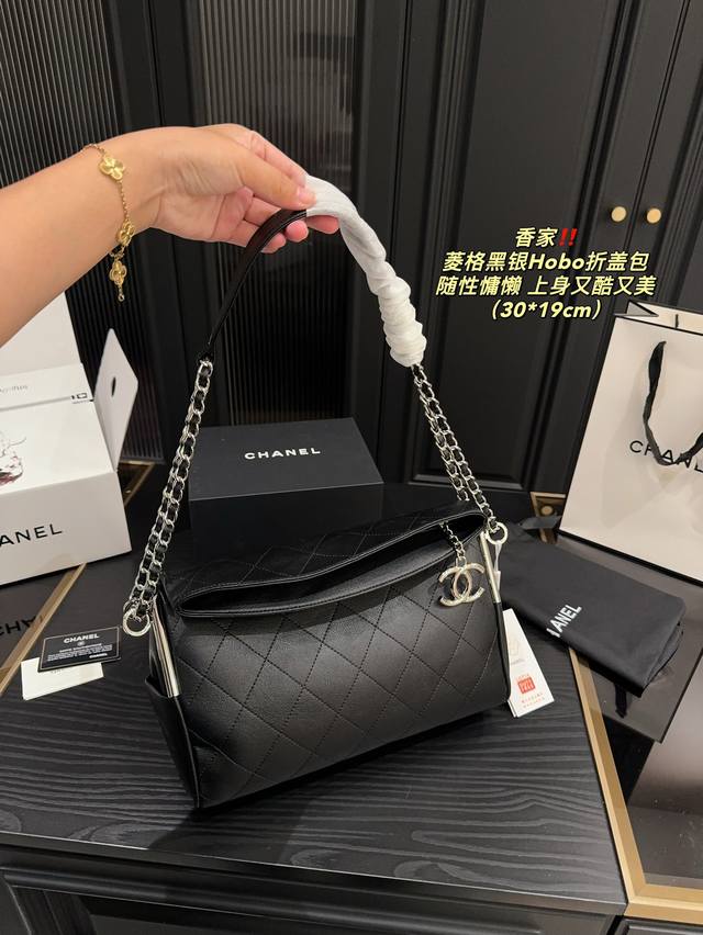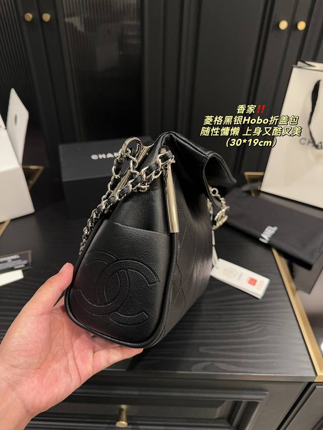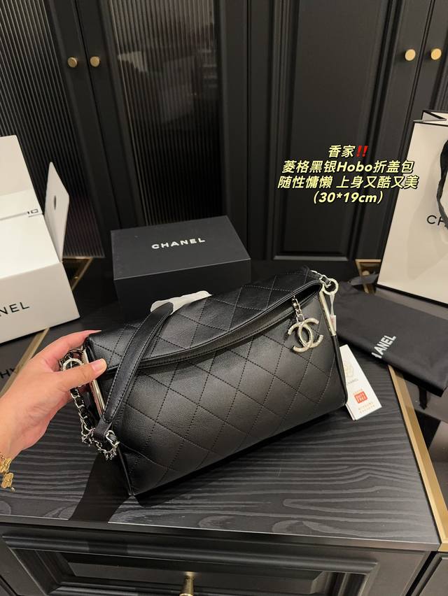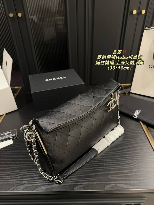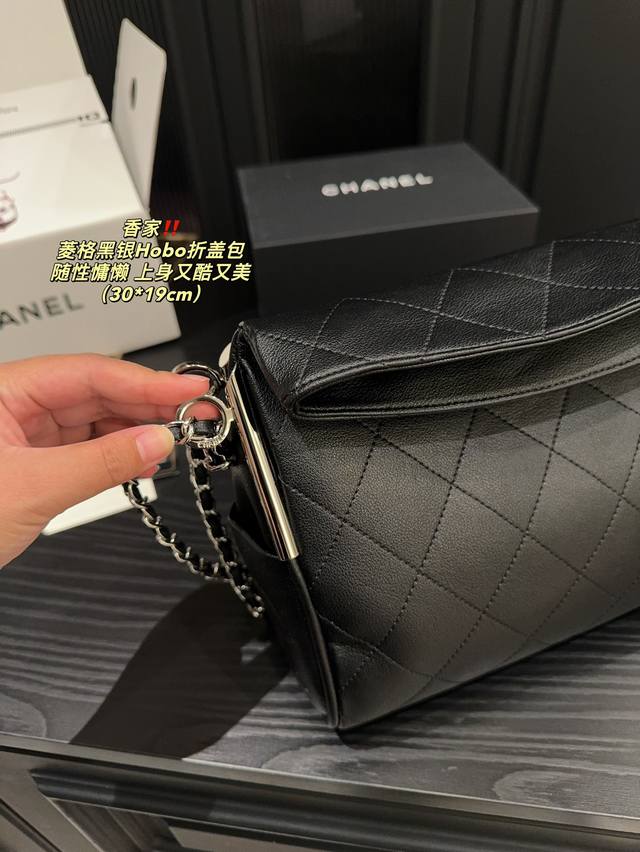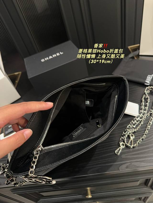 香奈儿 黑银hobo折盖包 Chanel