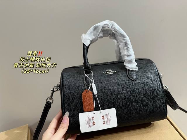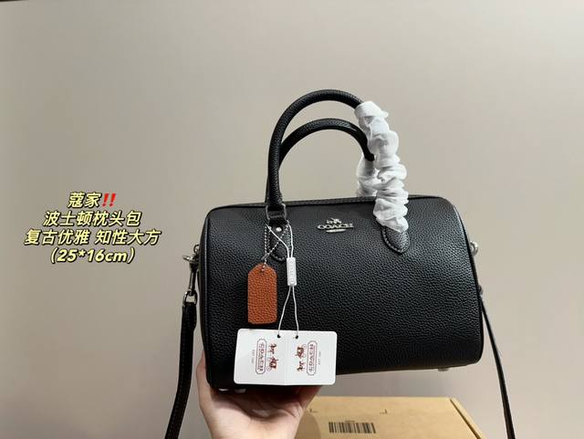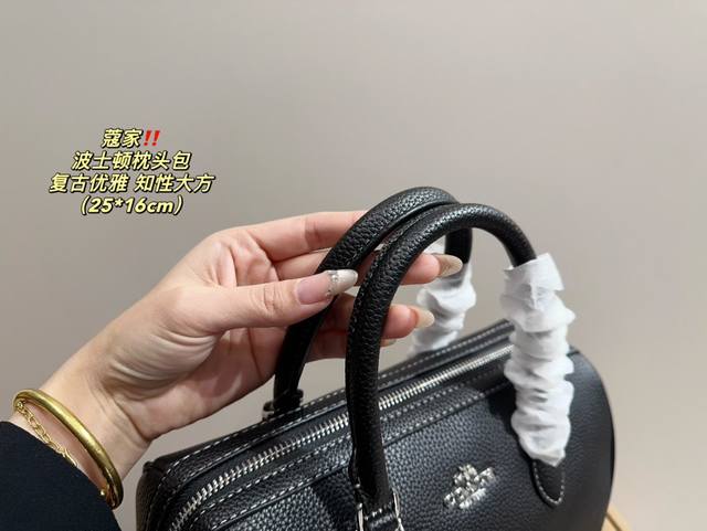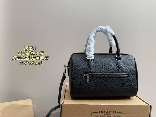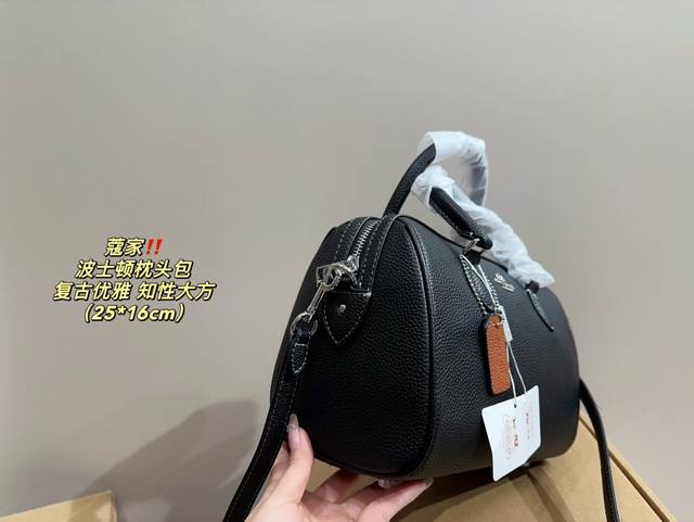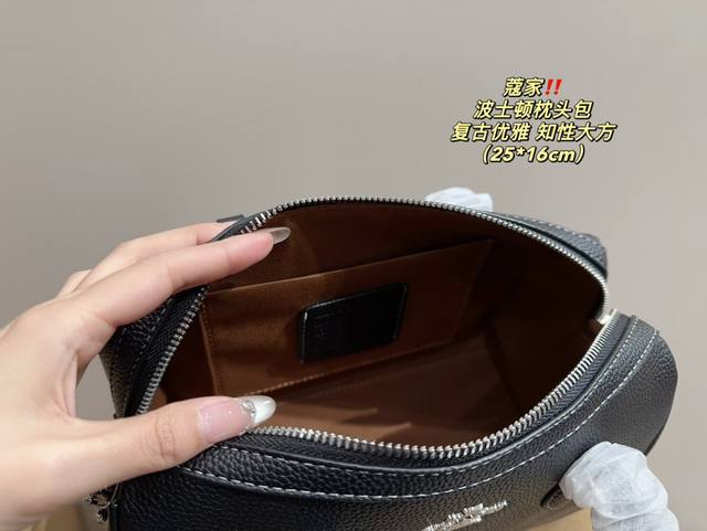 配盒尺寸25.16 蔻驰 波士顿枕头包 Coach 银扣 时髦拿捏住啦 不显老气好好搭啊 而旦貌美气质加成好高的呀~ 爱死了这份从容优雅