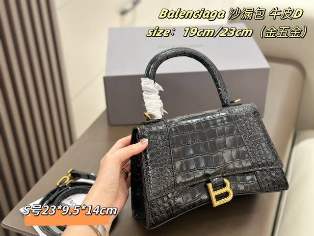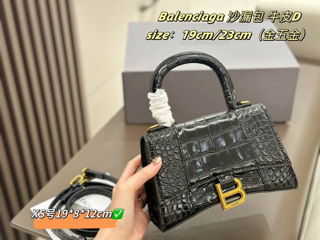 Hourglass的造型感特别强,让人一眼惊艳。其实这个设计来自balenciaga创始人cristóbal Balenciaga开创的标志性basque-Waist元素,Demna Gvasalia不仅在成衣设计上连续几季使用这个元素,还延伸到包包设计上。整个包包的弧形线条非常多,但同时也有棱有角、刚柔并济。同时,Hourglass还很有建筑气息,整个线条的轮廓神似巴黎埃菲尔铁塔,怪不得这么美 小号最能表现这个包包轮廓造型的一个尺寸,弧线比例最