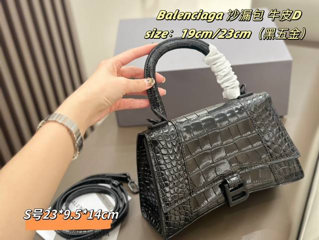 Hourglass的造型感特别强,让人一眼惊艳。其实这个设计来自balenciaga创始人cristóbal Balenciaga开创的标志性basque-Waist元素,Demna Gvasalia不仅在成衣设计上连续几季使用这个元素,还延伸到包包设计上。整个包包的弧形线条非常多,但同时也有棱有角、刚柔并济。同时,Hourglass还很有建筑气息,整个线条的轮廓神似巴黎埃菲尔铁塔,怪不得这么美 小号最能表现这个包包轮廓造型的一个尺寸,弧线比例最