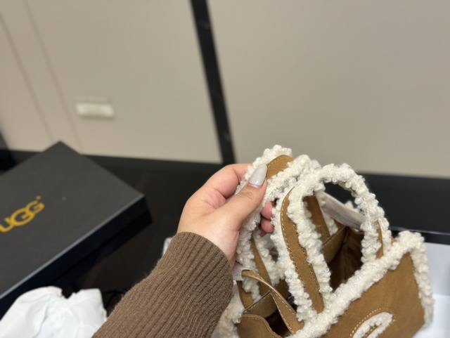 Ugg 羊羔毛麂皮托特包 加上毛茸茸的元素瞬间软绵绵的 一下就温柔起来了。 秋冬很适合背毛绒包! 不仅手感很棒 还能取暖~ 软乎乎毛茸茸 简直无法拒绝啊 尺寸: