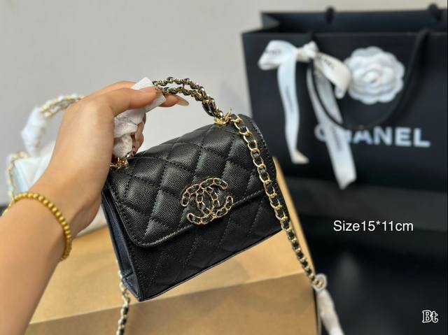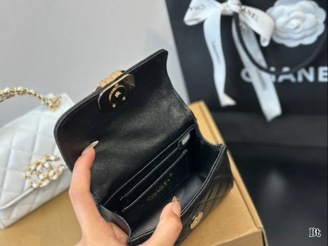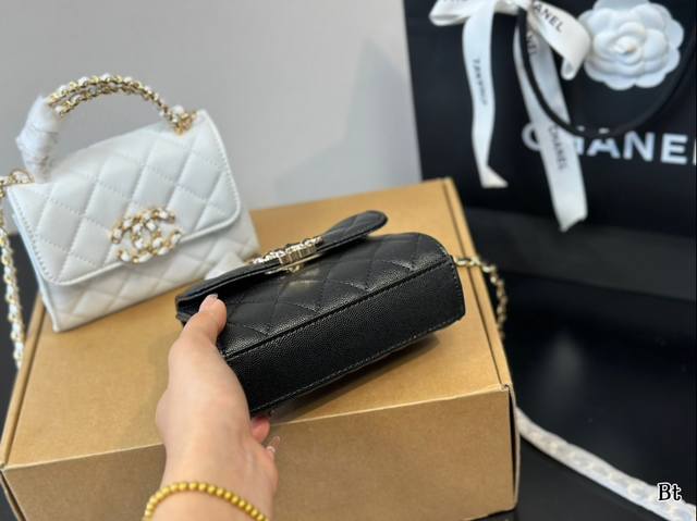 礼盒包装 Chanel 香奈儿 新款钻石手柄发财包 绝美 实物比照片好看,在树脂的手柄和镂空的中间选择了这...