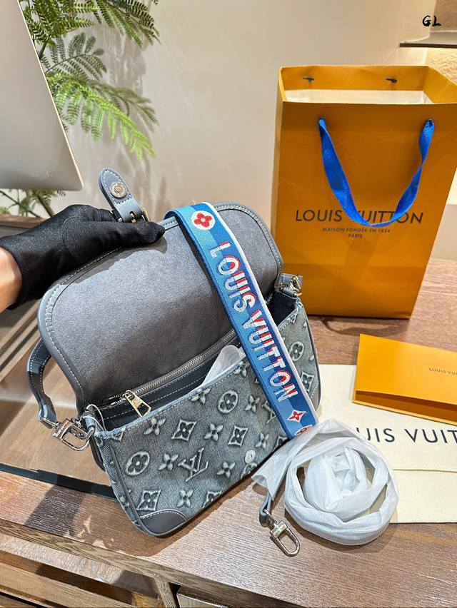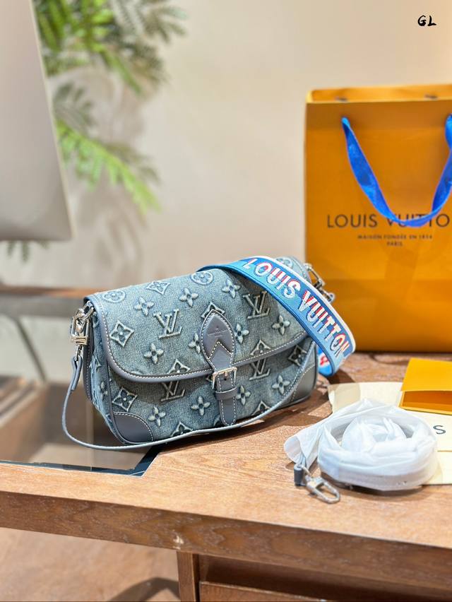 Lv牛仔浮雕法棍 女包女士单肩包腋下包法棍差包斜挎包翻盖手袋 这款邮差包真是太有味道了浓浓的复古风情的精髓体现的淋漓尽致挺括明快的线条与丰富的经典设计细节彰显独
