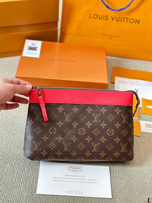 Louisvuitton 路易威登棋盘格手袋 Pochette Voyage洗漱包 手拿包 原厂面料材质 电镀五金 高端货 原版牛皮 尺寸30 20Cm