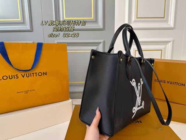 无盒 Size:32×26 Lv路易威登 新款航海系列托特包 简约设计结合航海绳结元素 设计和配色都突出航海风格 空间,可手提可腋下单肩 好喜欢这种浪漫的精神