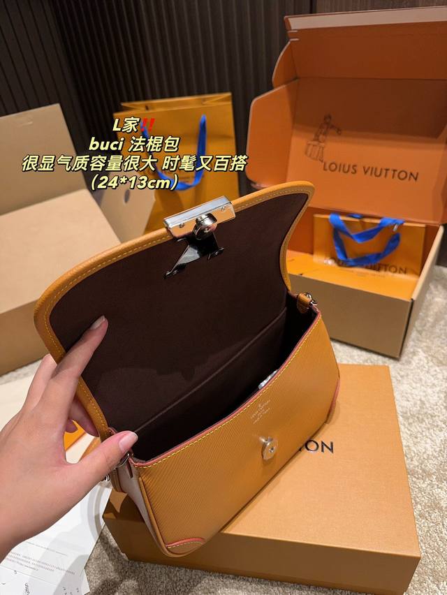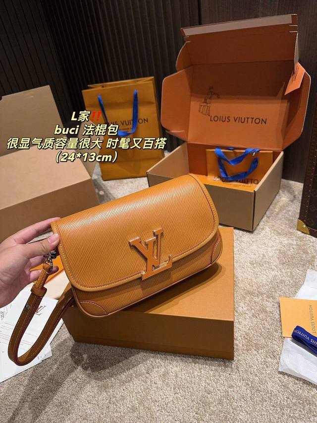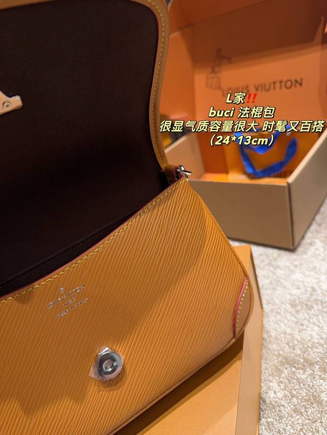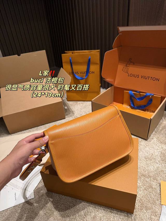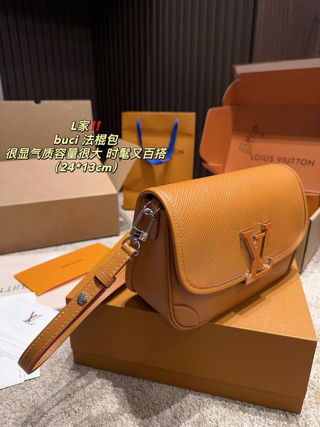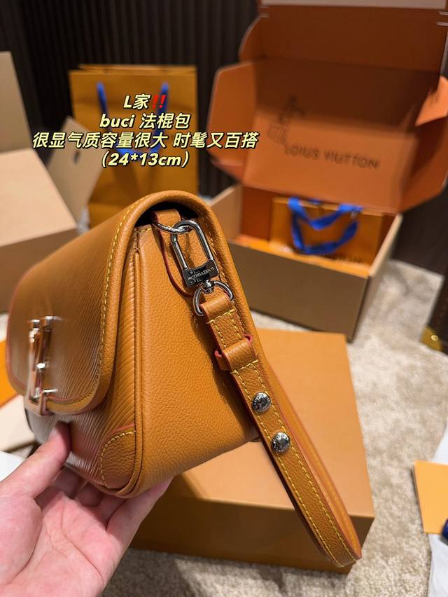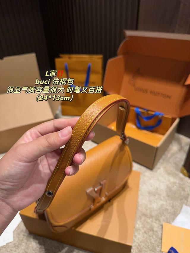 纯皮 全套包装尺寸24.13 Lv Buci 法棍包 很显气质而且容量大,不同光线 下呈现出深浅不同的色泽 真的特别耐看!很适合时髦又有气质的女生~ 侧面和包角
