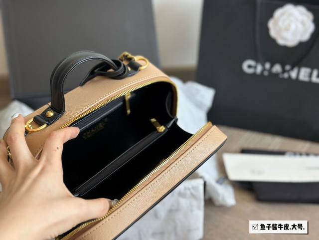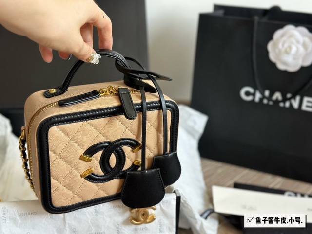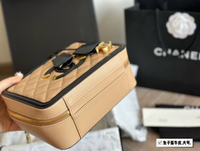 Chanel 香奈儿 新款盒子化妆包采用鱼子酱面料 制作,时时刻刻展现最美的你。可单肩,斜挎,尽显女人优雅气质,是一款超级百搭的休闲链条包尺寸 21Cm 17C