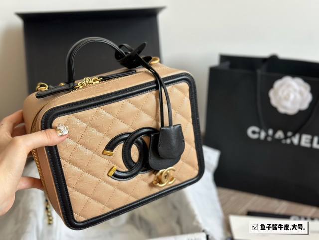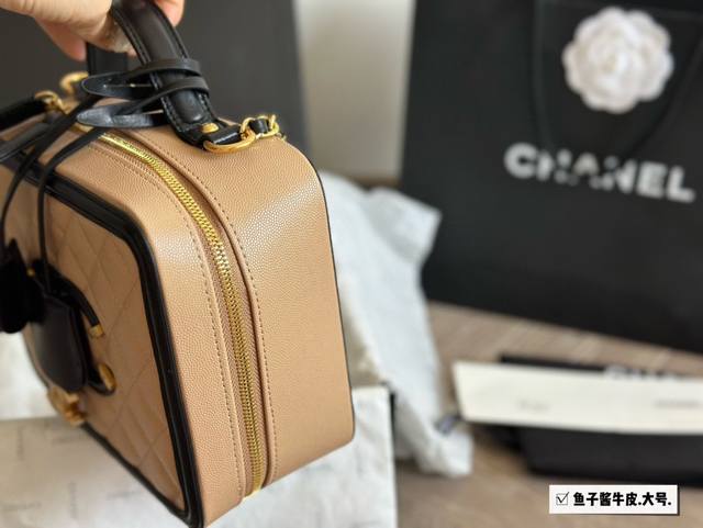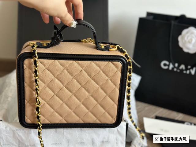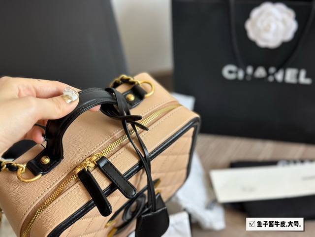 Chanel 香奈儿 新款盒子化妆包采用鱼子酱面料 制作,时时刻刻展现最美的你。可单肩,斜挎,尽显女人优雅气质,是一款超级百搭的休闲链条包尺寸 21Cm 17Cm 全套包装