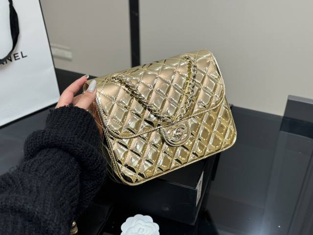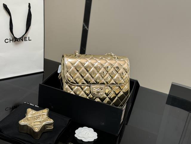配折叠盒 Size:24*19Cm 香奈儿 24C 漆皮双肩包 这个真的是太太太好看了 金的刚刚好不俗艳不张扬很能装! 还有小星星哦!