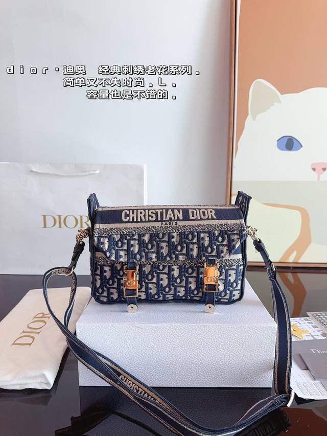 配礼盒. Dior 迪奥 新款camp邮差包 男女同款 超适合街拍 休闲中性穿搭都 老花单肩斜挎信使包 尺寸:24*8*16Cm.