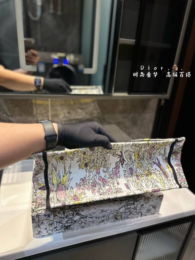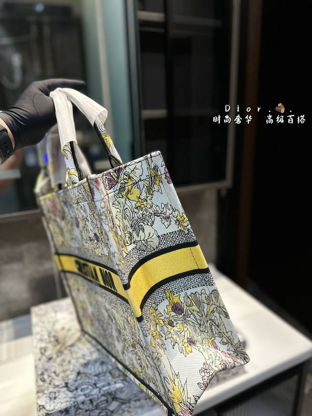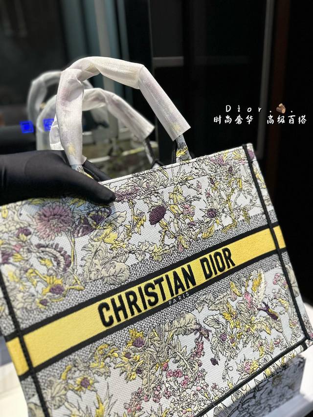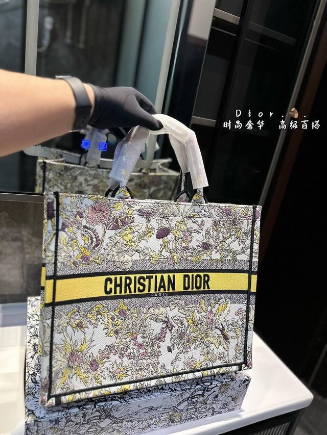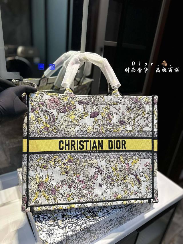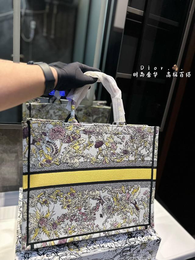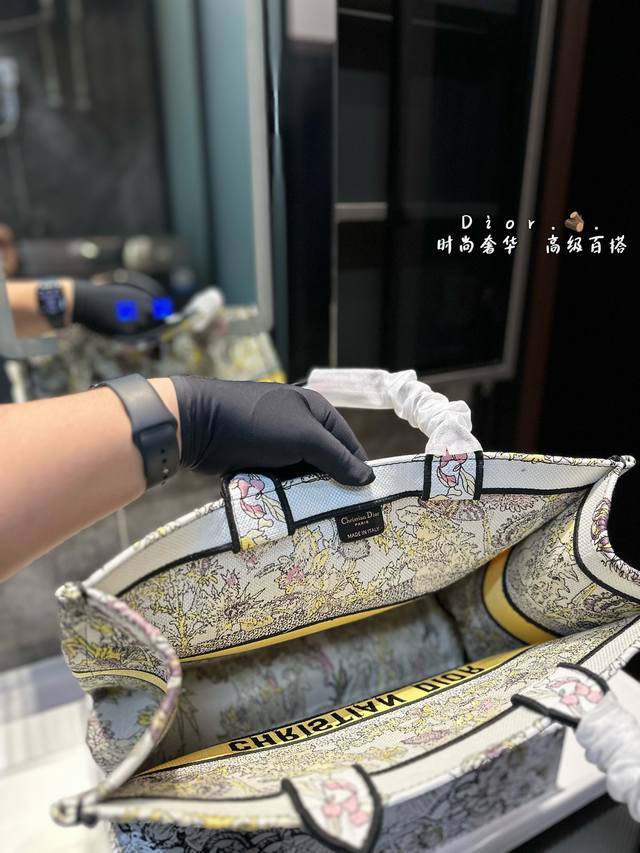 迪奥tote托特包购物袋3D浮雕原版布 Dior 原版布提花 配丝巾dior Book Tote今年最喜欢的一款购物袋 Tote我用的次数最多的包,因为容量超级大,不管什么东西都向里面放,当然凹造型也是必须有的,这款dior老花是我最喜欢的颜色,柜台出了很多颜色及花型,最后挑了这个颜色 小号的精致有型 尺寸42Cm 36Cm 26Cn