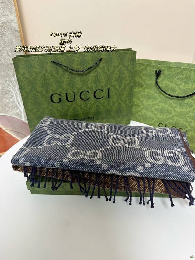 配盒 +5 Gucci 古驰 围巾 这款围巾适用于秋冬提亮肤色上身效果气场非常强大,手感柔软,成色有质感,匠心之作。