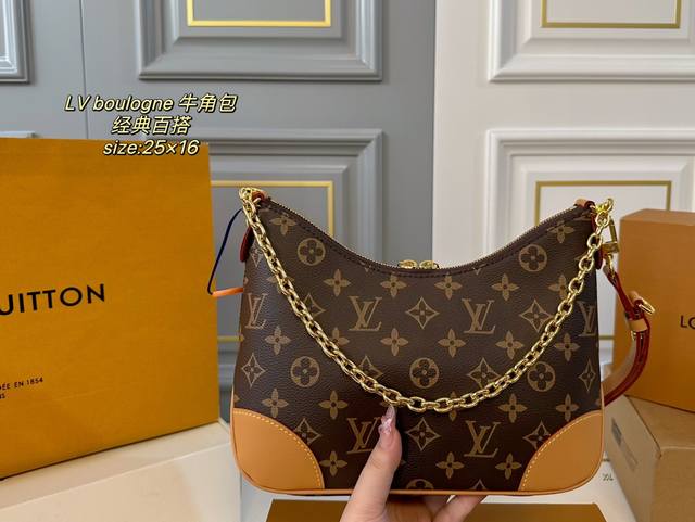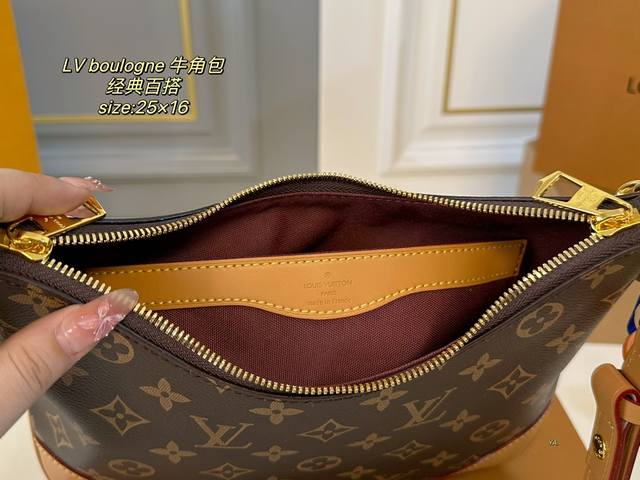 / 折叠盒 Size:25×16 Lv路易威登boulogne中古牛角包 经典老花配色,款式百搭! 包身轻,不显臃肿 两款肩带,背法多样~ 超级好搭配,实用性美貌兼