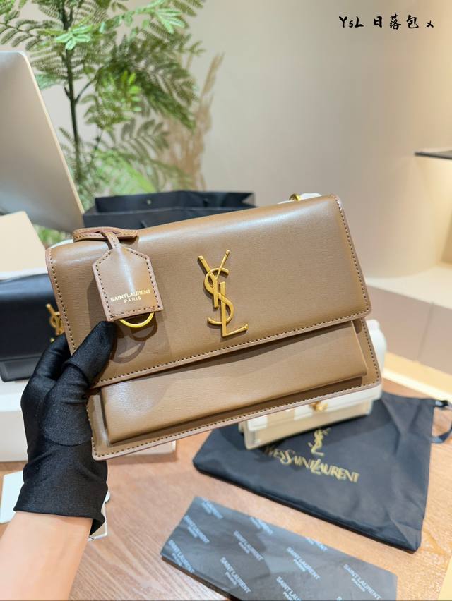 Ysl Sunset中号牛皮链条斜挎包包身精致又立体