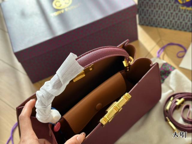 配盒尺寸25.20 托里伯奇Toryburch 荔枝皮戴妃托特包 包身重量非常轻,手提斜挎都可以的 全荔枝纹牛皮设计,实用和时尚并存