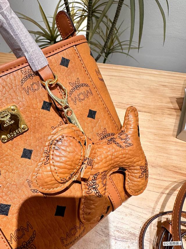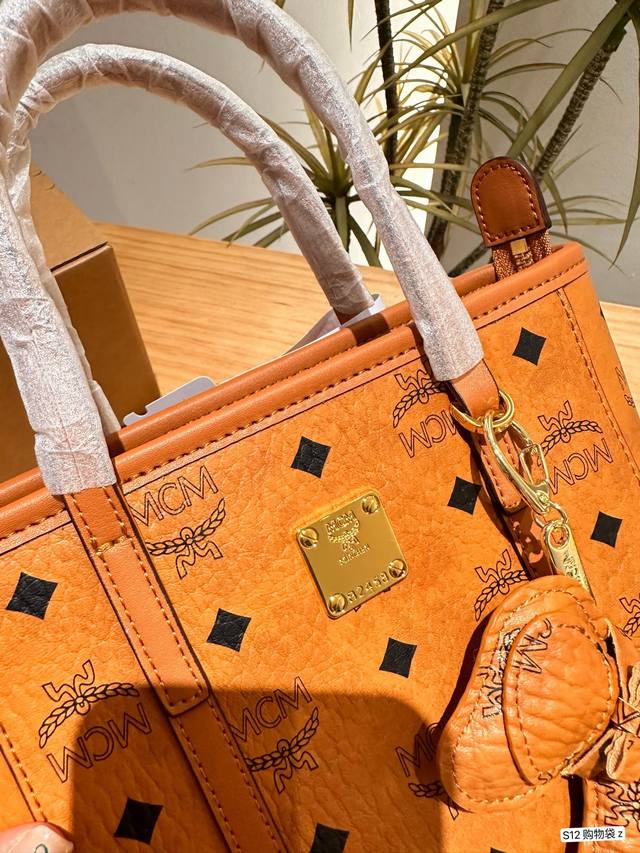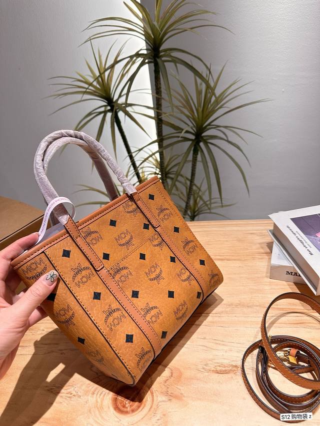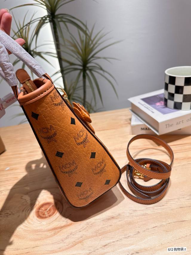 顶级原单 牛皮 Mcm 原单牛皮 Mini菜篮子 茶金mc 新款购物袋 菜篮子手提肩背超实用...